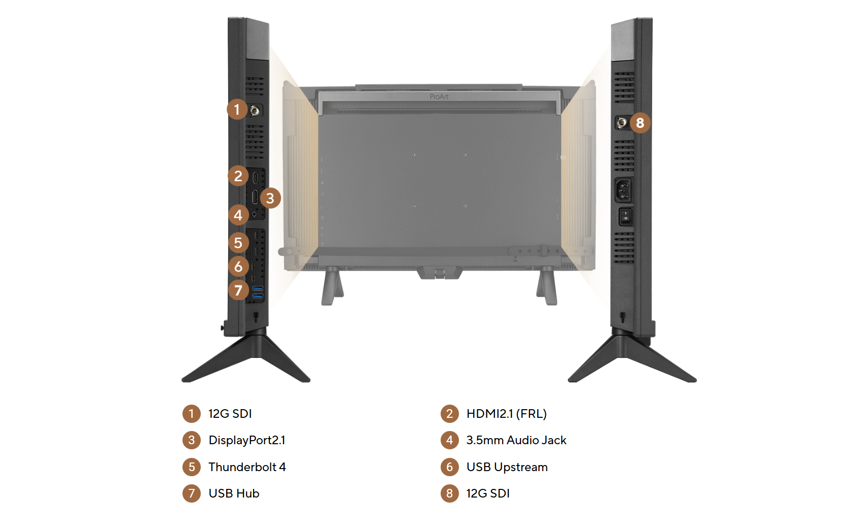 Podobnie, PA32USD może pochwalić się 99% pokryciem przestrzeni barw DCI-P3 z kalibracją kolorów ΔE <1. Asus dołączył jednak wbudowany kolorymetr, który może automatycznie skalibrować monitor w razie potrzeby, bez konieczności korzystania z dodatkowego sprzętu lub oprogramowania. Co więcej, PA32USD jest wyposażony w dwa porty Serial Digital Interface (SDI) działające z prędkością 12 GB/s do przesyłania nieskompresowanych filmów 4K/60 Hz.