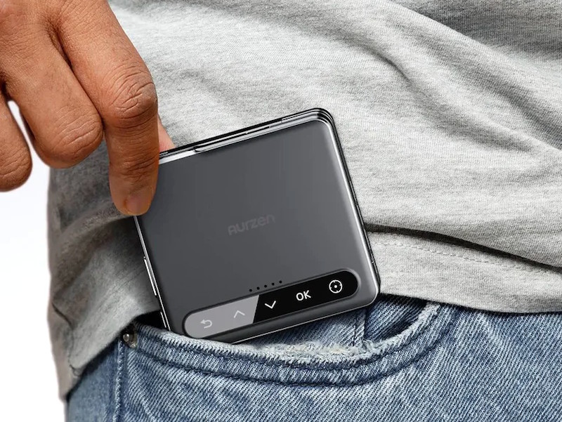 Aurzen dostarcza obecnie projektor ZIP - najmniejszy na świecie, kieszonkowy projektor składany na trzy części. Projektor DLP po złożeniu ma wymiary 3,3 x 3,1 x 1 cala (84 x 78 x 26 mm) i waży zaledwie 280 g (9,8 uncji).