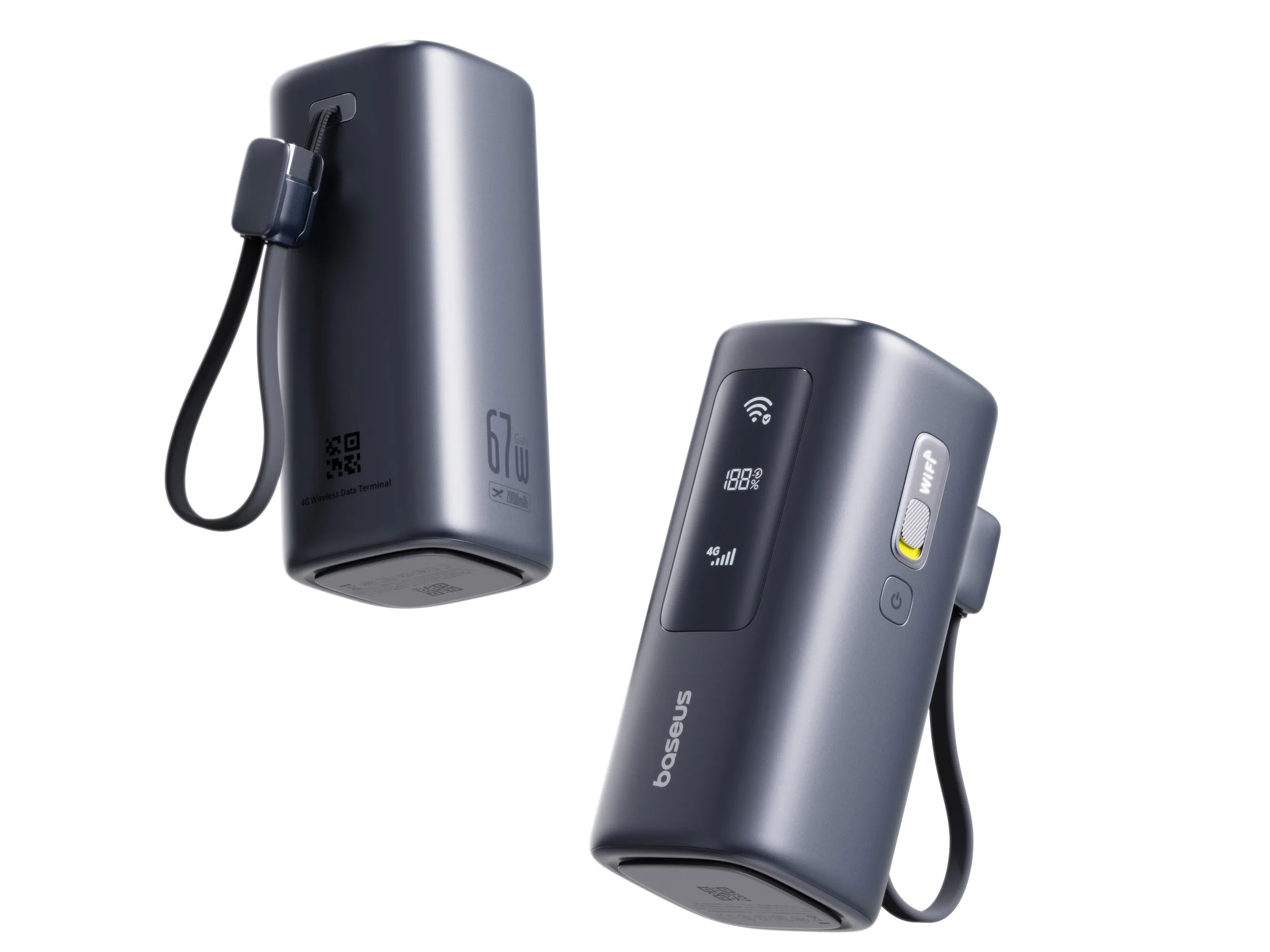 Nadchodzący zasilacz Baseus może być również używany do ładowania urządzeń za pośrednictwem trzech portów USB-C i USB-A, oferując moc wyjściową do 67W. W zestawie znajduje się również zintegrowany kabel USB-C, a maksymalna moc wejściowa USB-C do ładowania urządzenia wynosi 65W. Baseus EnerGeek GX11 4G MiFi Power Bank ma wymiary 6,1 x 2,2 x 2,0 cala (~155,7 x 54,6 x 49,5 mm).