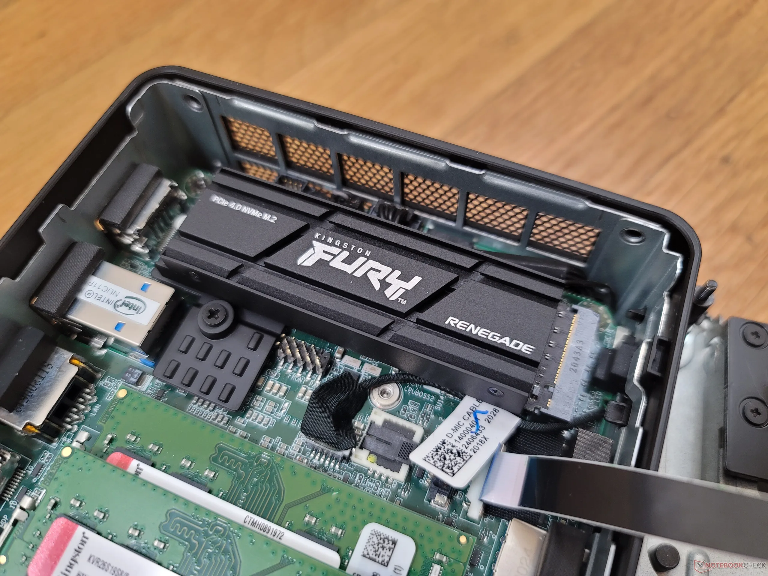Do naszego hosta PC użyliśmy tego samego mini PC Intel NUC11, który obsługuje dyski SSD PCIe4 x4 NVMe. Obudowa zawiera własny radiator dla dysków SSD, ale my używamy tylko radiatora dołączonego do dysku Kingston.