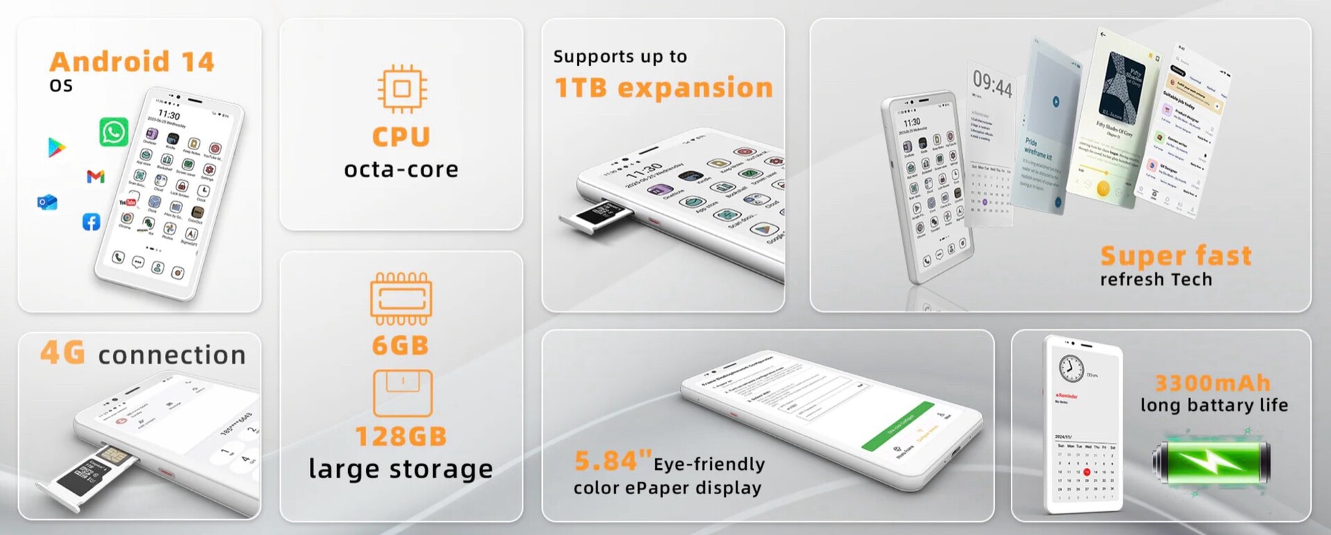 Dzięki przedniej kamerze 5 MP, głównej kamerze 13 MP, wbudowanemu modemowi LTE i głośnikowi nad wyświetlaczem, Bigme Hibreak S może być pełnoprawnym zamiennikiem smartfona, nawet jeśli jego wydajność jest prawdopodobnie poniżej średniej według dzisiejszych standardów. Niemniej jednak, bateria ma pojemność 3300 mAh, co w połączeniu z energooszczędnym wyświetlaczem powinno zapewnić długi czas pracy pomimo mniejszej obudowy. Tymczasem system operacyjny Android 14 oferuje dostęp do niezliczonych aplikacji innych firm, ale Bigme nie potwierdziło, czy telefon otrzyma przyszłe aktualizacje Android.