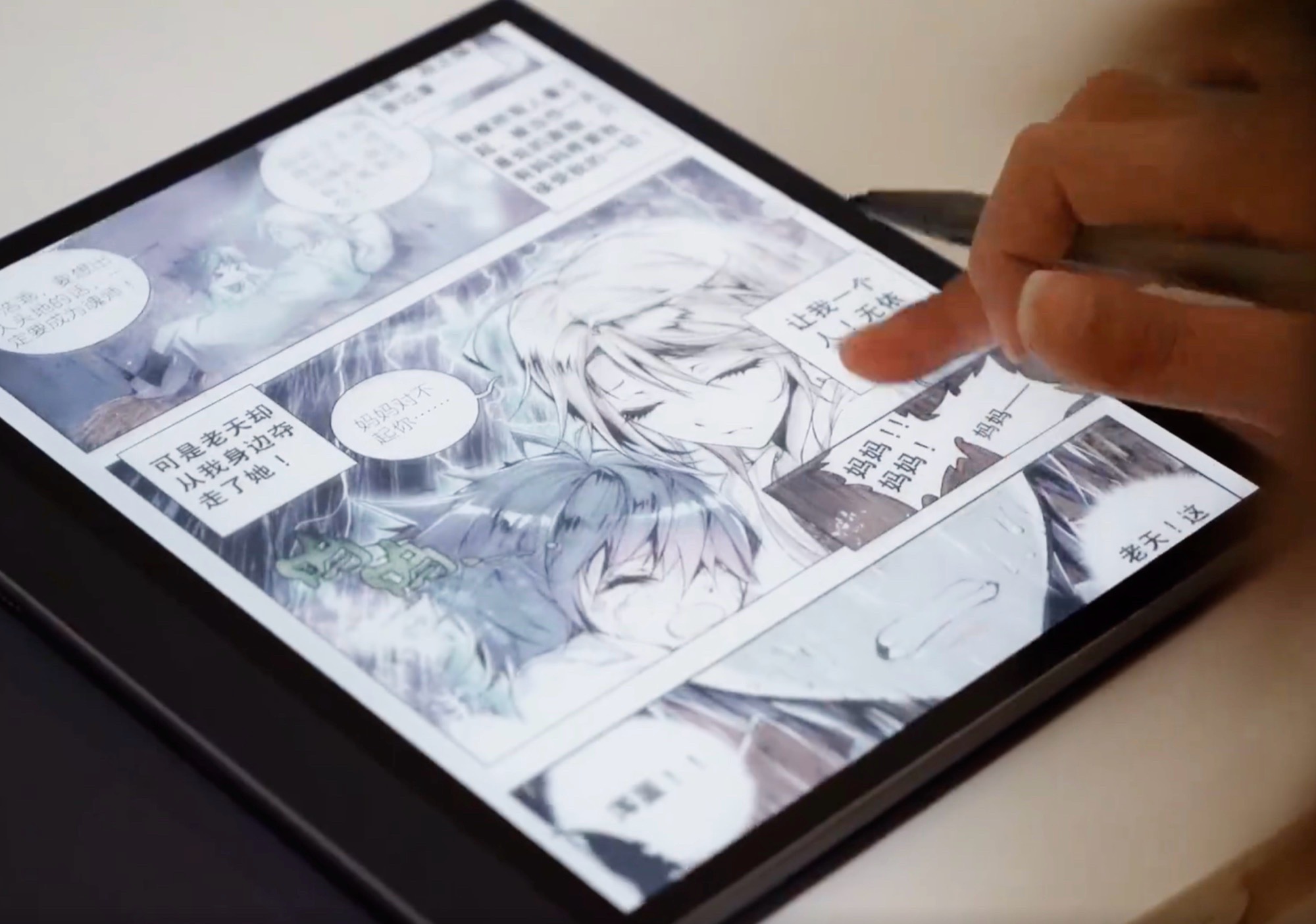 Tablet posiada 10,3-calowy wyświetlacz E Ink Kaleido 3, który zarządza gęstością pikseli 300 PPI dla skali szarości i 150 PPI dla koloru. Jak zwykle w przypadku E Ink, ekran można łatwo odczytać również w bezpośrednim świetle słonecznym. Do użytku przy słabym oświetleniu dostępna jest przednia lampka, której temperaturę barwową można ustawić na 36 poziomach od ciepłej bieli do chłodnej bieli.
