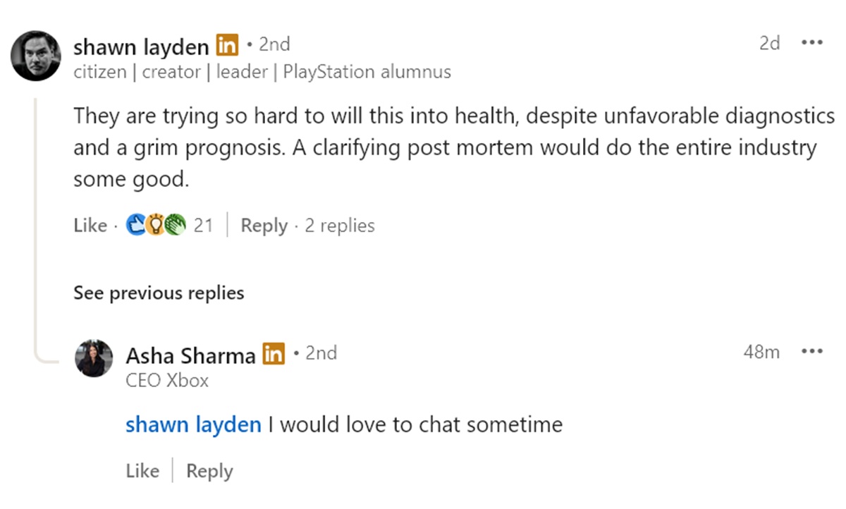 Shawn Layden nigdy nie wahał się krytykować swojej byłej firmy. Były prezes Sony Interactive Entertainment podzielił się również opiniami na temat PlayStation Plus alternatywy, Xbox Game Pass. Respawn First zauważył post na LinkedIn https://www.linkedin.com/feed/update/urn:li:activity:7449889783608340481/?dashCommentUrn=urn%3Ali%3Afsd_comment%3A(7449917847943708673%2Curn%3Ali%3Aactivity%3A7449889783608340481) w którym wyraził pesymizm co do usługi subskrypcji.
