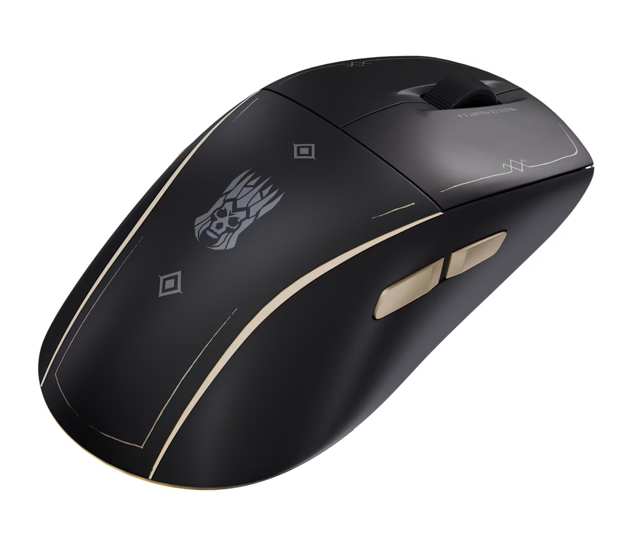 Bezprzewodowa mysz do gier Corsair M75 Witcher 3: Wild Hunt 10th Anniversary Edition ma złote przyciski po bokach i motywy inspirowane światem Wiedźmina. Na myszy znajduje się również symbol Eredina Bréacc Glasa, króla Dzikiego Gonu.