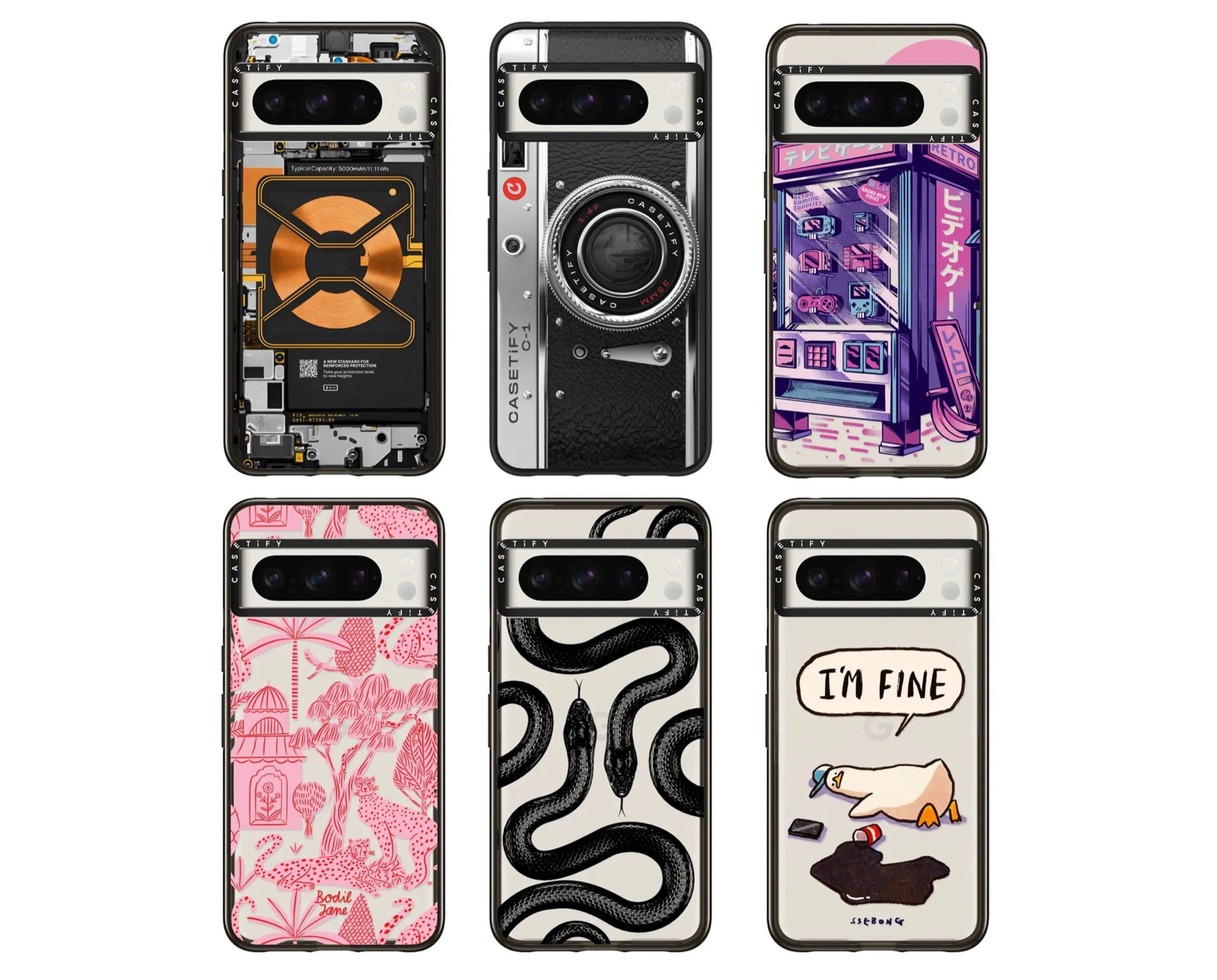 Etui są certyfikowane zgodnie z programem Google "Made for Google", który zapewnia optymalne dopasowanie. Etui wykonane są z plastiku pochodzącego z recyklingu, który ma chronić Pixel 8 przed upadkami z wysokości do 2,5 metra. Aby zapobiec uszkodzeniom spowodowanym niekorzystnymi kątami uderzenia, etui wystaje nieco poza kamerę i wyświetlacz smartfona.