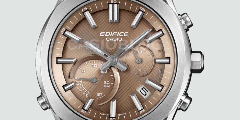 Nowy wariant ma ten sam ogólny język projektowania, ale zmienia tonację kolorów. Łączy on ciepłą brązową tarczę ze srebrną kopertą i bransoletą ze stali nierdzewnej. Podobnie jak inne wersje, posiada on teksturowaną tarczę z geometrycznymi wzorami i nakładanymi indeksami pałeczkowymi, co nadaje mu nieco bardziej warstwowy wygląd niż typowe modele Edifice - jednak nic wielkiego.