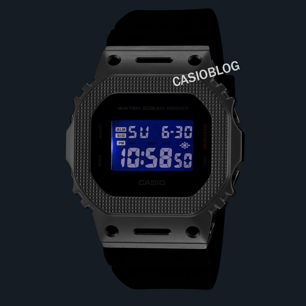 Oba modele, GM-5600M-1 i GM-2100M-1A, wyposażone są w ujemne (odwrócone) wyświetlacze LCD o wysokim kontraście - a pogrubiona czerwona etykieta "WR 20BAR" stanowi kolorowy akcent na całkowicie czarnej powierzchni. Dodatkowo, istnieje specjalny materiał podkreślający, że cała powierzchnia, a nie tylko ramka, jest poddawana obróbce laserowej w celu uzyskania antyodblaskowego, matowego wyglądu, co dodatkowo zmniejsza ryzyko widocznego zużycia lub odcisków palców - bonus dla użytkowników noszących na co dzień.