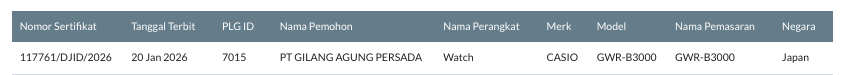 Nowy model Casio G-Shock jest w drodze: GWR-B3000. Numer modelu został niedawno zauważony w bazach danych, takich jak Dyrekcja Generalna Zasobów i Sprzętu dla Poczty i Technologii Informacyjnych w Indonezji (SDDPI).