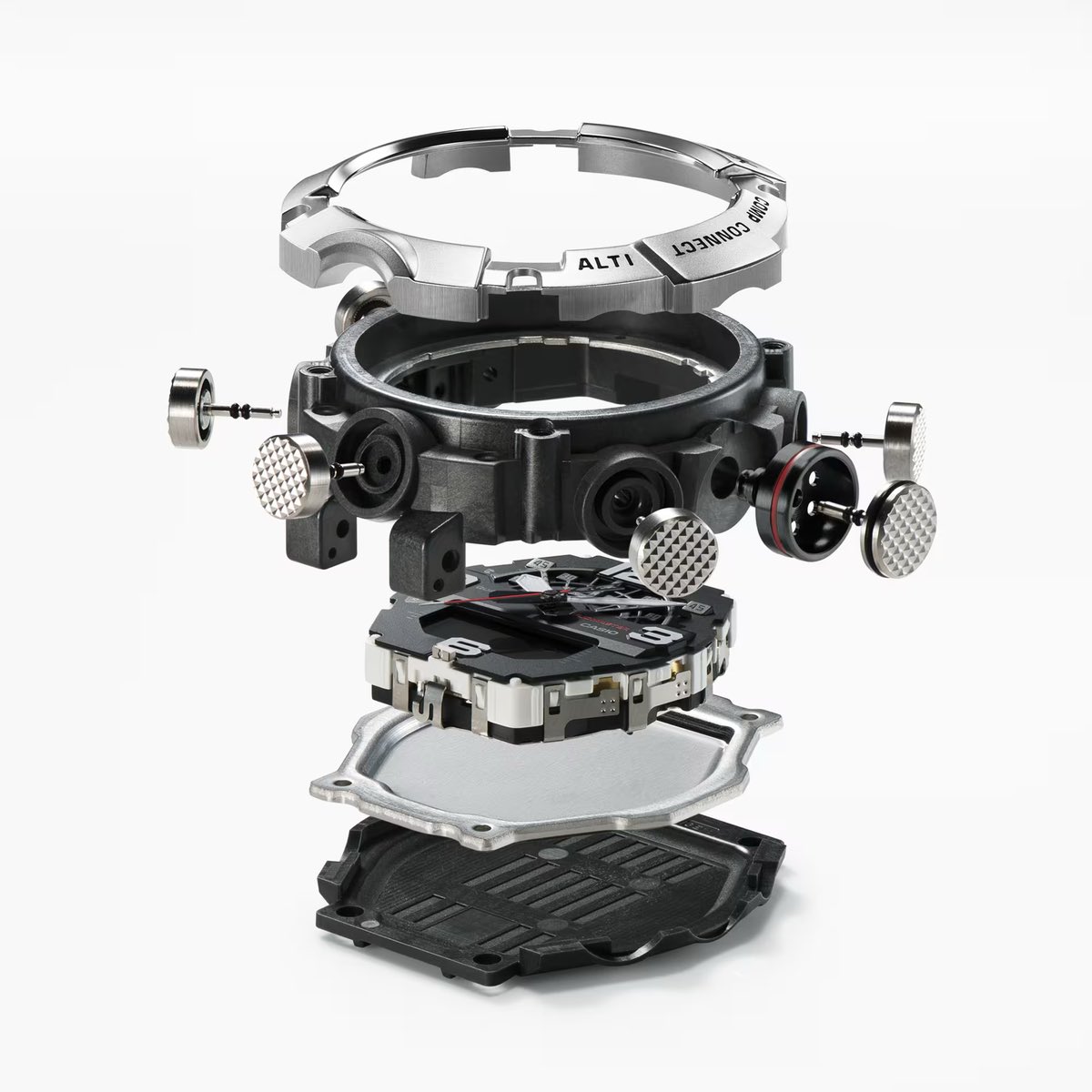 Seria GG-B100 zawiera również poczwórny zestaw czujników do precyzyjne śledzenie danych środowiskowychw tym cyfrowy kompas, barometr, czujnik temperatury i akcelerometr do liczenia kroków. Otrzymują Państwo również łączność Bluetooth, która umożliwia połączenie zegarka ze smartfonem za pośrednictwem aplikacji Casio, a także funkcję o nazwie Mission Log, która automatycznie rejestruje dane wysokości z zegarka i synchronizuje je z danymi trasy GPS z telefonu w celu uzyskania szczegółowych dzienników trekkingowych.