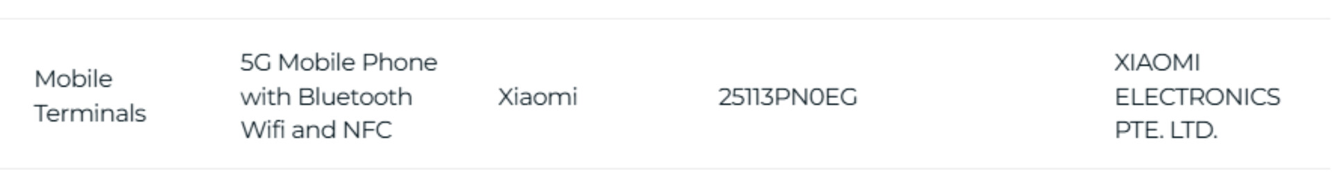 Teraz to, co wydaje się być globalną wersją Xiaomi 17, pojawiło się w publicznej bazie danych Infocomm Media Development Authority (IMDA) w Singapurze. W szczególności organ regulacyjny certyfikował "25113PN0EG", jak pokazuje poniższe zdjęcie. W oparciu o nomenklaturę numerów modeli Xiaomi, 25113PN0EG powinien być globalną wersją 25113PN0EC, numeru modelu przypisanego do chińskiej wersji Xiaomi 17 Xiaomi 17.