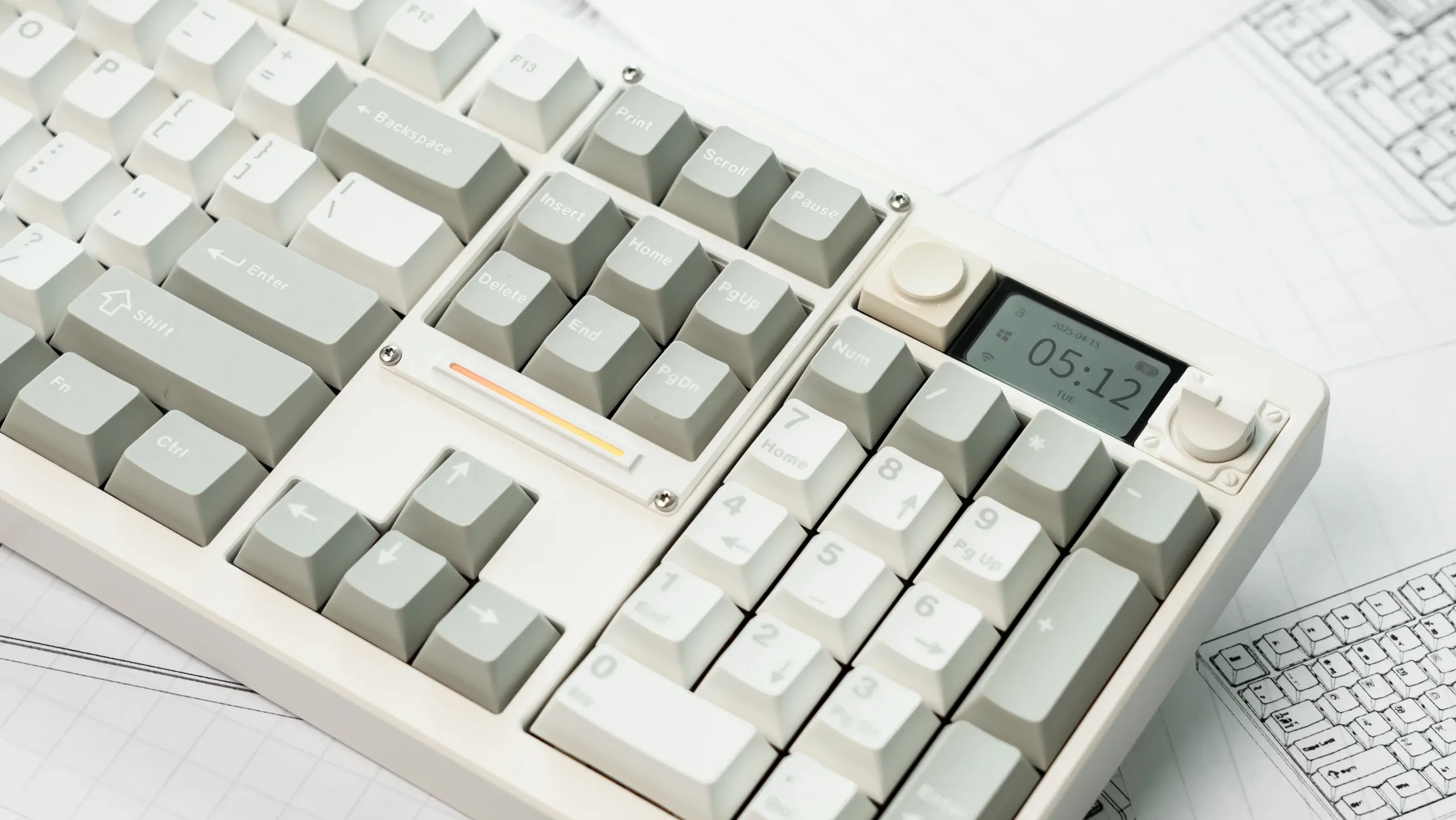 Zasadniczo Chilkey ND104 to pełnowymiarowa (104-klawiszowa), bezprzewodowa klawiatura mechaniczna z aluminiową obudową, wbudowanym ekranem i pokrętłem, ale posiada również kilka zabawnych, ukrytych sztuczek i funkcji, które wyróżniają ją zarówno dla przeciętnych użytkowników, jak i entuzjastów klawiatur mechanicznych.