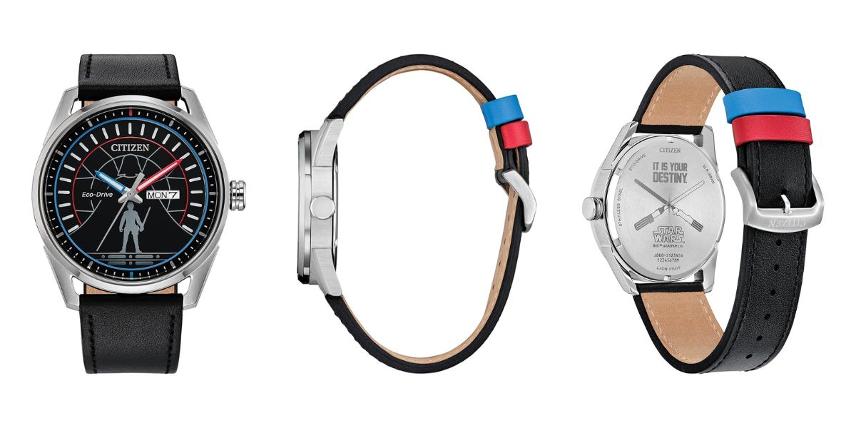 Zegarek Citizen Star Wars Duel ma czarną tarczę ze srebrnymi konturami Luke'a Skywalkera i Dartha Vadera, którzy słynnie pojedynkowali się na Cloud City w filmie Imperium kontratakuje. Na całej tarczy znajdują się czerwone i niebieskie akcenty, w tym wypełnione światłem wentylatory i szlufki paska zegarka; są to kolory mieczy świetlnych używanych w walce. Tarcza otoczona jest obudową ze szczotkowanej stali nierdzewnej o średnicy 42 mm (~ 1,65 cala), a na stalowym deklu wygrawerowano tekst "It is your destiny" oraz dwa miecze świetlne.