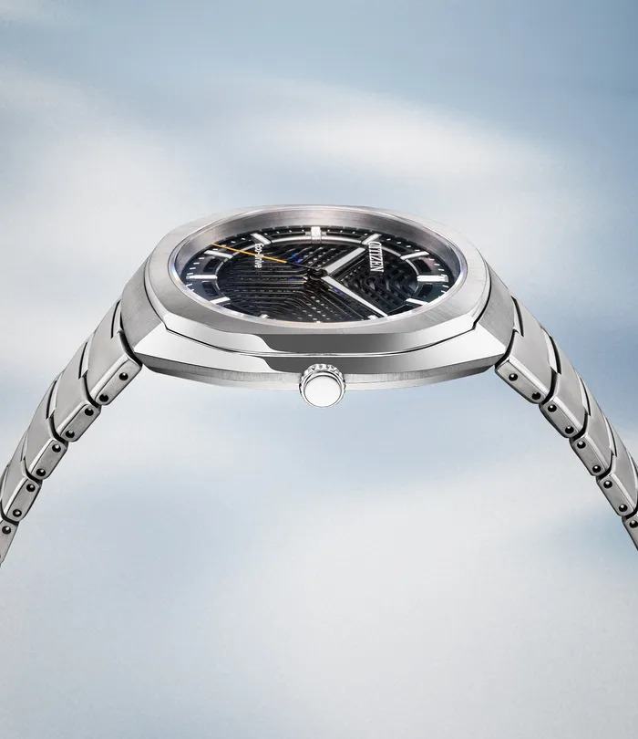 Sercem tej nowej premiery jest nowa wielowarstwowa tarcza. Citizen wykorzystuje dwie szczelinowe warstwy metalu ułożone jedna na drugiej, co tworzy wzór przypominający interferencję. Pod nimi znajduje się strukturalna kolorowa folia umieszczona nad ogniwem słonecznym. Gdy światło przechodzi przez szczeliny, tarcza generuje zmieniające się kolory w zależności od kąta patrzenia. Otrzymają Państwo widoczny efekt 3D, który zmienia się w czasie rzeczywistym.