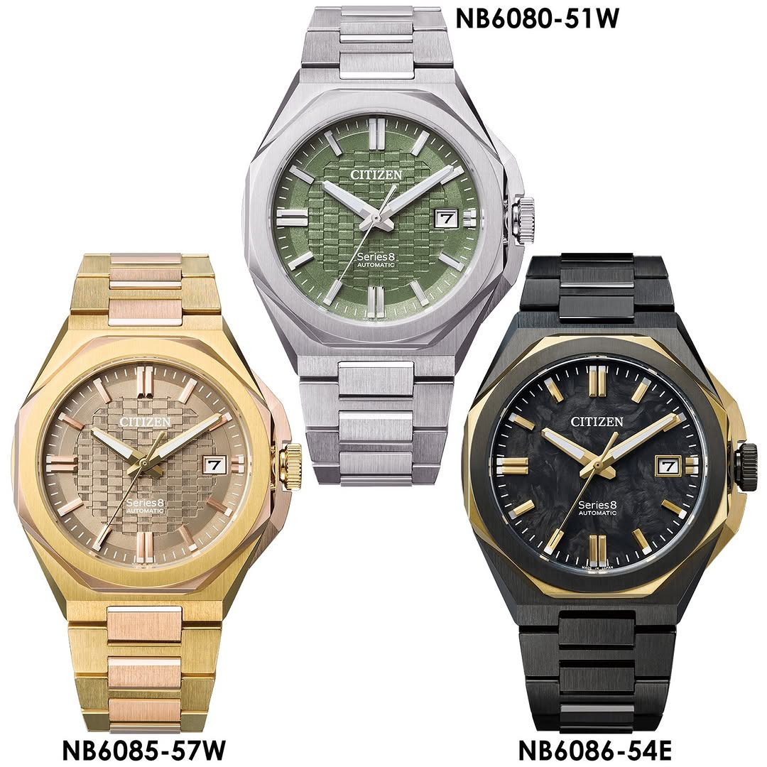 Citizen jest obecnie na fali, rozszerzając linię Series 8 o modele NB6080-51W, NB6085-57W oraz limitowaną edycję NB6086-54E. Modele te są mniejsze w porównaniu do poprzednich 42 mm wariantów, dzięki przejściu na średnicę 39,3 mm, aby sprostać obecnym trendom rynkowym. Koperta składa się z pięciu różnych elementów ze stali nierdzewnej, z których wszystkie są polerowane w celu uzyskania wielokątnego wykończenia. Kluczową specyfikacją techniczną jest grubość 10,4 mm - osiągnięto to przy zachowaniu wodoodporności na poziomie 20 barów (200 metrów).
