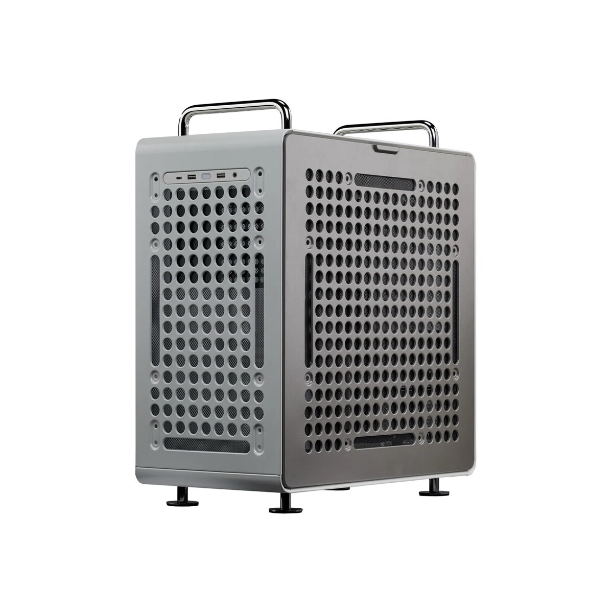 The new Cooler Master QUBE 540 is advertised as a highly versatile PC case with a relatively low price. Its dimensions of 42.5 x 42.5 x 22.5 cm make it compatible with mainboards in the ITX to E-ATX formats as well as graphics cards that are up to 41.5 cm long. Large circular openings on the front, back can be used to attach accessories directly to the case.