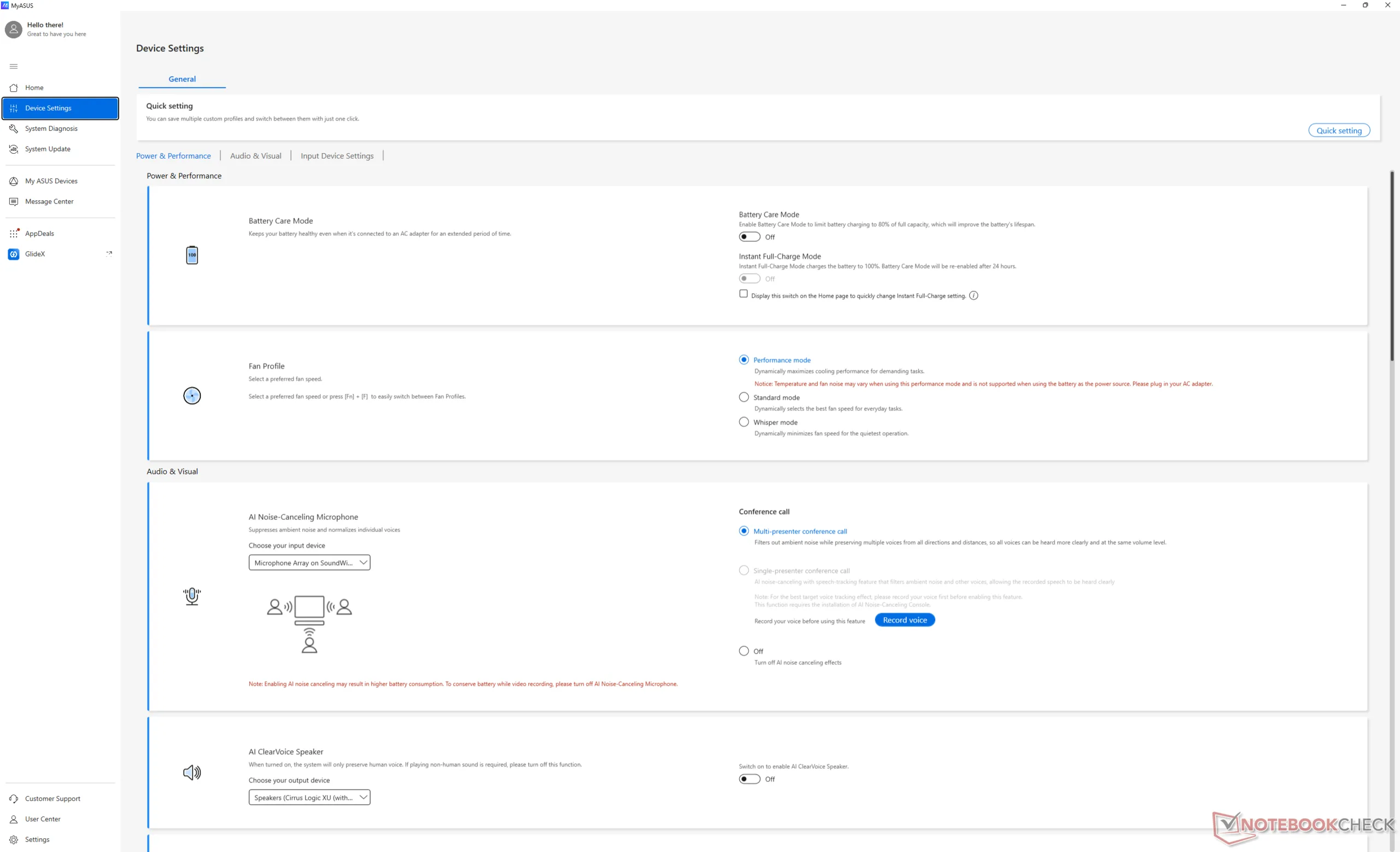 Na Asus ExpertBook Ultramaksymalna wydajność procesora wiąże się jednak z jednym warunkiem: zasilaniem sieciowym. Jak pokazują poniższe zrzuty ekranu, praca na baterii może spowolnić wydajność o około 10 do 15 procent. Oprogramowanie MyAsus potwierdza to nawet czerwonym tekstem stwierdzającym, że "ten tryb wydajności nie jest obsługiwany podczas korzystania z baterii jako źródła zasilania".