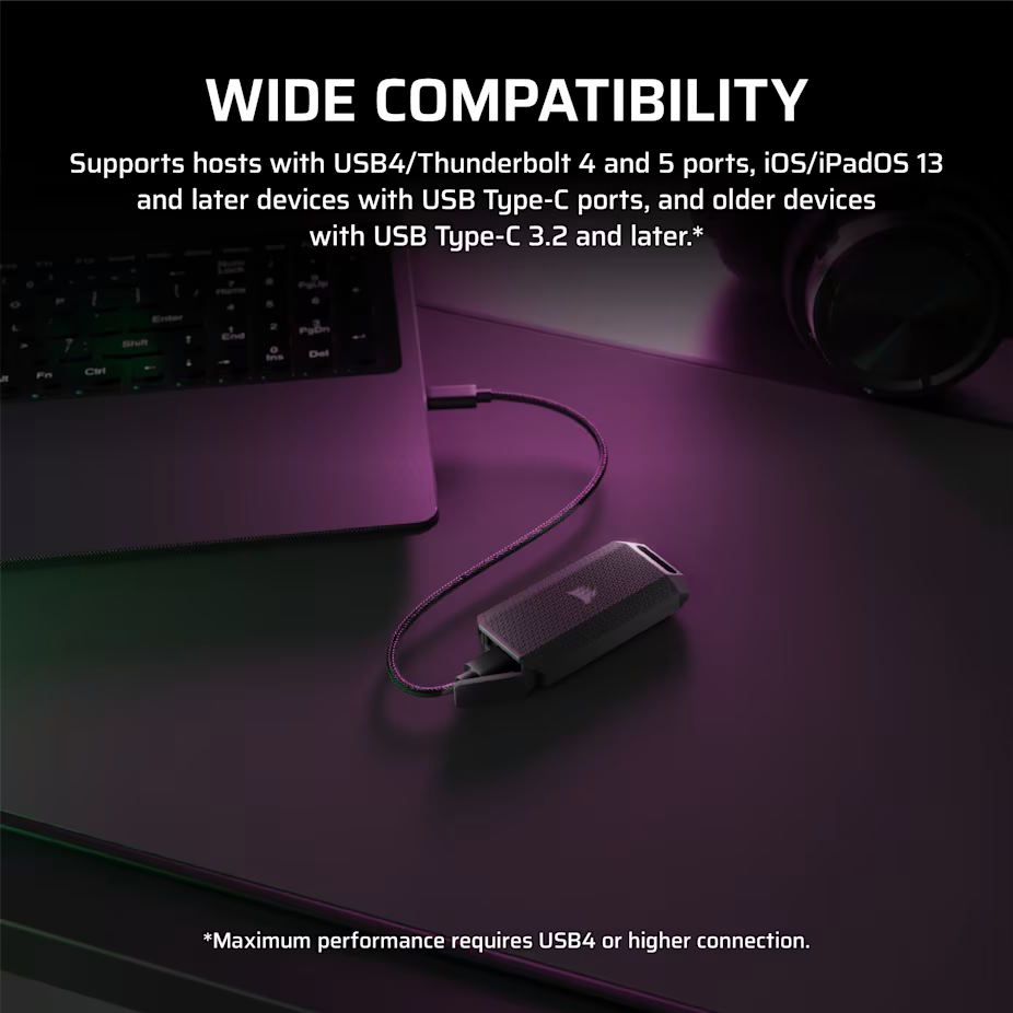 Niezależnie od wybranego modelu, obiecane są wysokie prędkości transferu danych. Łączy się on przez USB 4 z prędkością do 40 GBit/s, z maksymalną prędkością odczytu 4000 MByte/s i maksymalną prędkością zapisu 3600 MByte/s. Oczywiście te prędkości danych można osiągnąć tylko w optymalnych warunkach, a zatem przy sekwencyjnym transferze danych. Ponadto cały łańcuch transferu danych musi obsługiwać tak wysokie prędkości. Na przykład podczas tworzenia kopii zapasowej danych z dysku twardego staje się to wąskim gardłem.