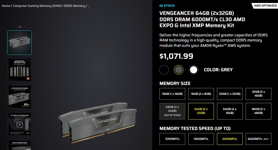 Jednym z wyraźnych przykładów jest zestaw pamięci RAM DDR5 Corsair Vengeance 64 GB. Jeszcze dwa dni temu zestaw ten był dostępny w cenie 841,99 USD, zgodnie ze zrzutem z web.archive. Chociaż cena ta była już niezwykle wysoka, odzwierciedlała ona obecną rzeczywistość na rynku pamięci, gdzie ceny gwałtownie wzrosły z powodu boomu na sztuczną inteligencję i zwiększonego popytu na pamięć DRAM. Wkrótce po wydaniu 40% kodów rabatowych, cena tego samego zestawu podskoczyła do 1071 USD, co oznacza wzrost o około 230 USD.