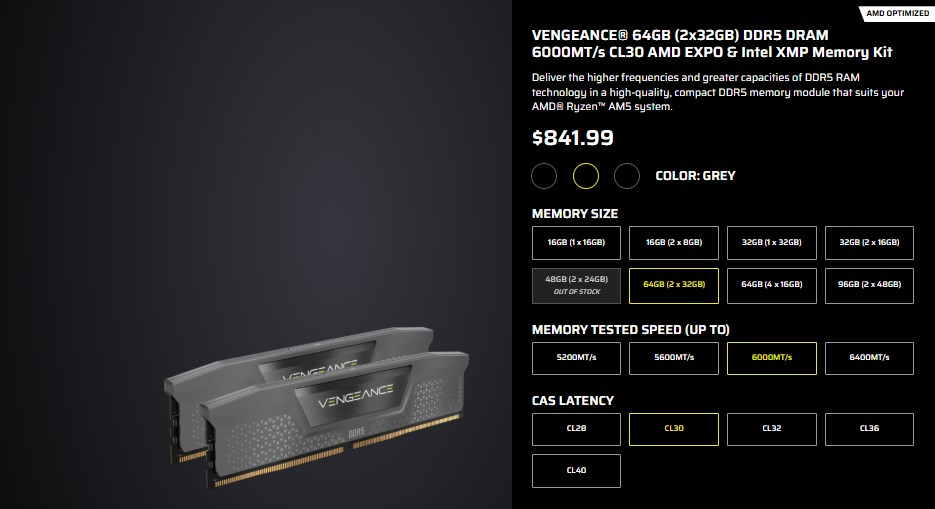 Na tym nie koniec. Zestaw Corsair Dominator Titanium RGB 48 GB DDR5 był wcześniej wyceniony na 647,99 USD. Cena ta wzrosła teraz do 819,99 USD, co dodatkowo sugeruje, że Corsair skorygował ceny w górę w wielu zestawach pamięci z wyższej półki.
