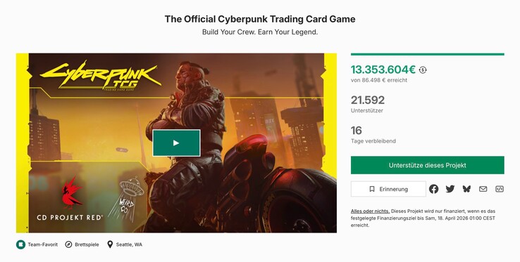 Grze udało się zebrać ponad 15,4 miliona dolarów od ponad 21 500 klientów. Oznacza to, że Cyberpunk TCG przekroczył nawet większość gier wideoz wyjątkiem Star Citizen, który zebrał już prawie miliard dolarów. WeirdCo przypisuje ten sukces nie tylko sile marki Cyberpunk, ale przede wszystkim ścisłej współpracy ze społecznością, co znajduje odzwierciedlenie w cotygodniowych ankietach, które wpływają na mapę drogową gry