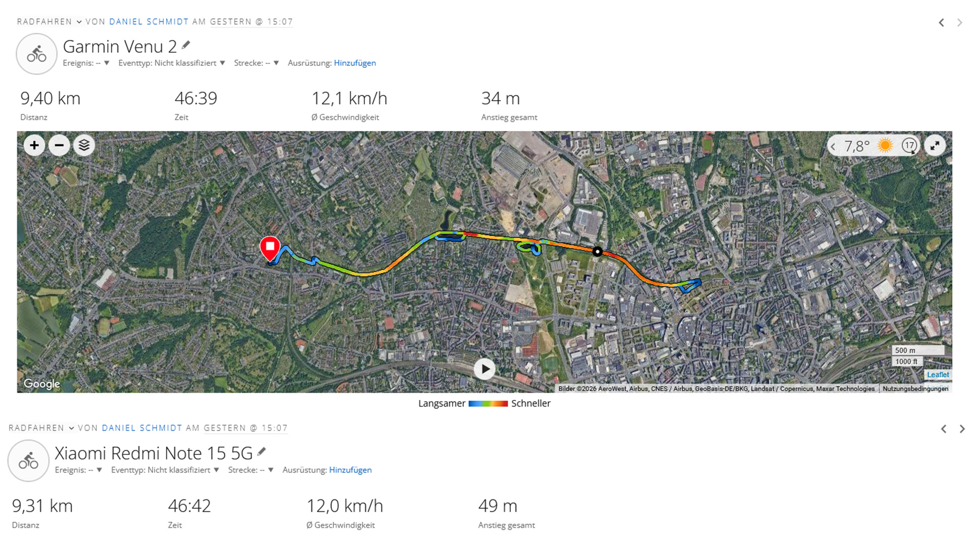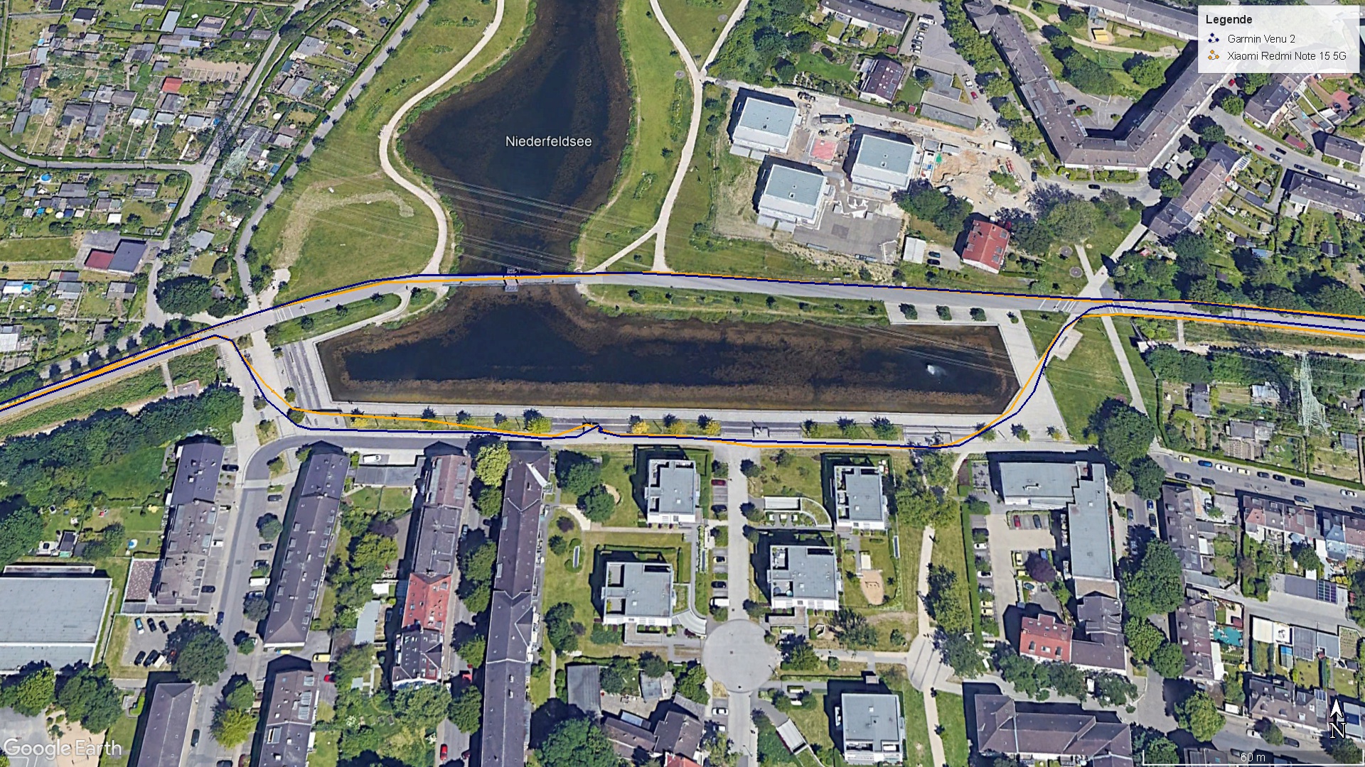 Podczas przejażdżki rowerowej porównaliśmy smartfon Xiaomi ze smartwatchem fitness firmy Garmin. Zarejestrowana trasa jest w większości dokładna, choć widoczne są pewne odchylenia od rzeczywistej ścieżki.