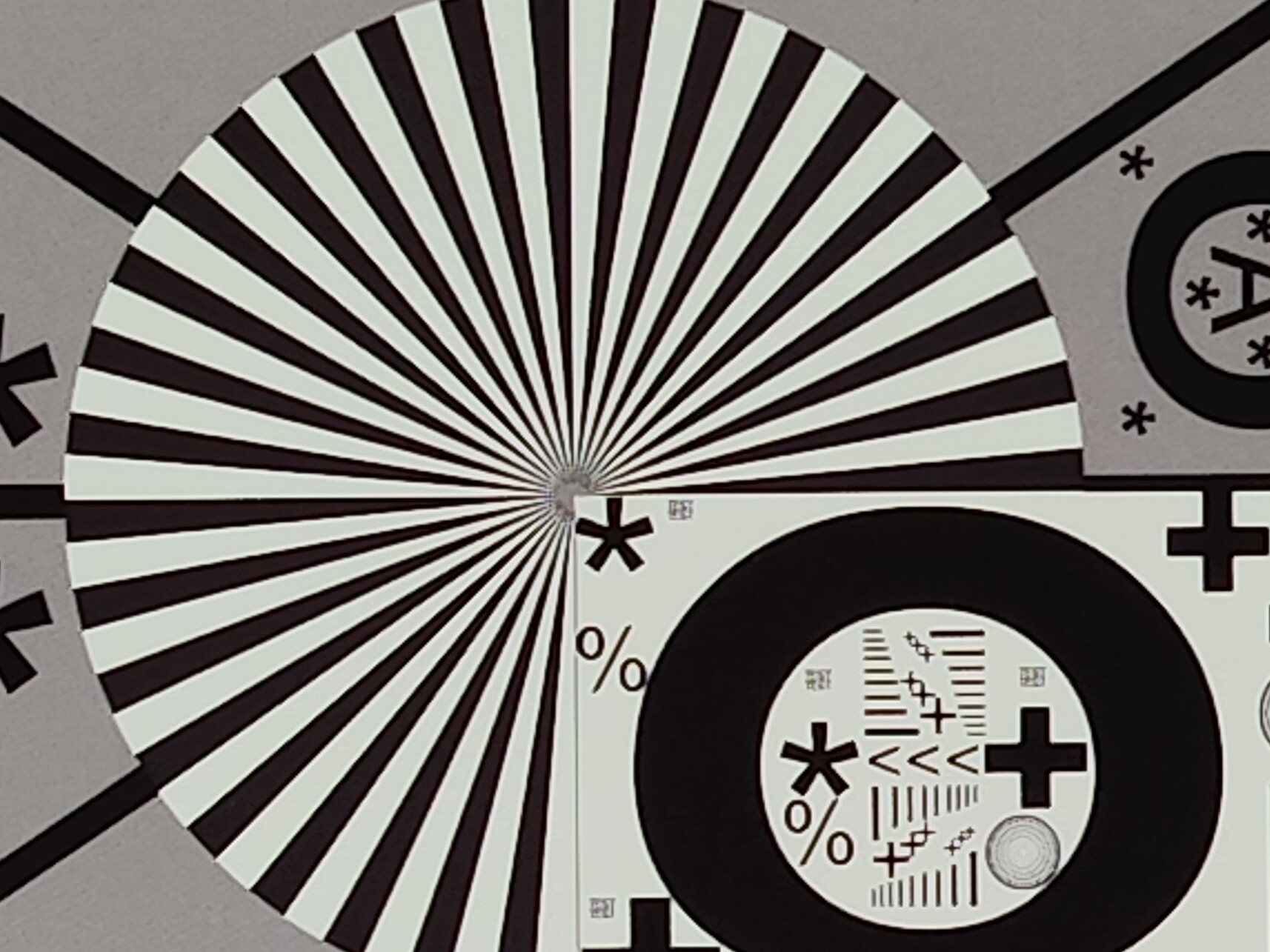 HauptkameraHauptkameraUltraweitwinkel5-facher ZoomLow-LightW kontrolowanych warunkach oświetleniowych wykres testowy pozostaje dość ostry nawet w kierunku krawędzi, chociaż drobne szczegóły wydają się rozmyte, w tym w centrum obrazu.