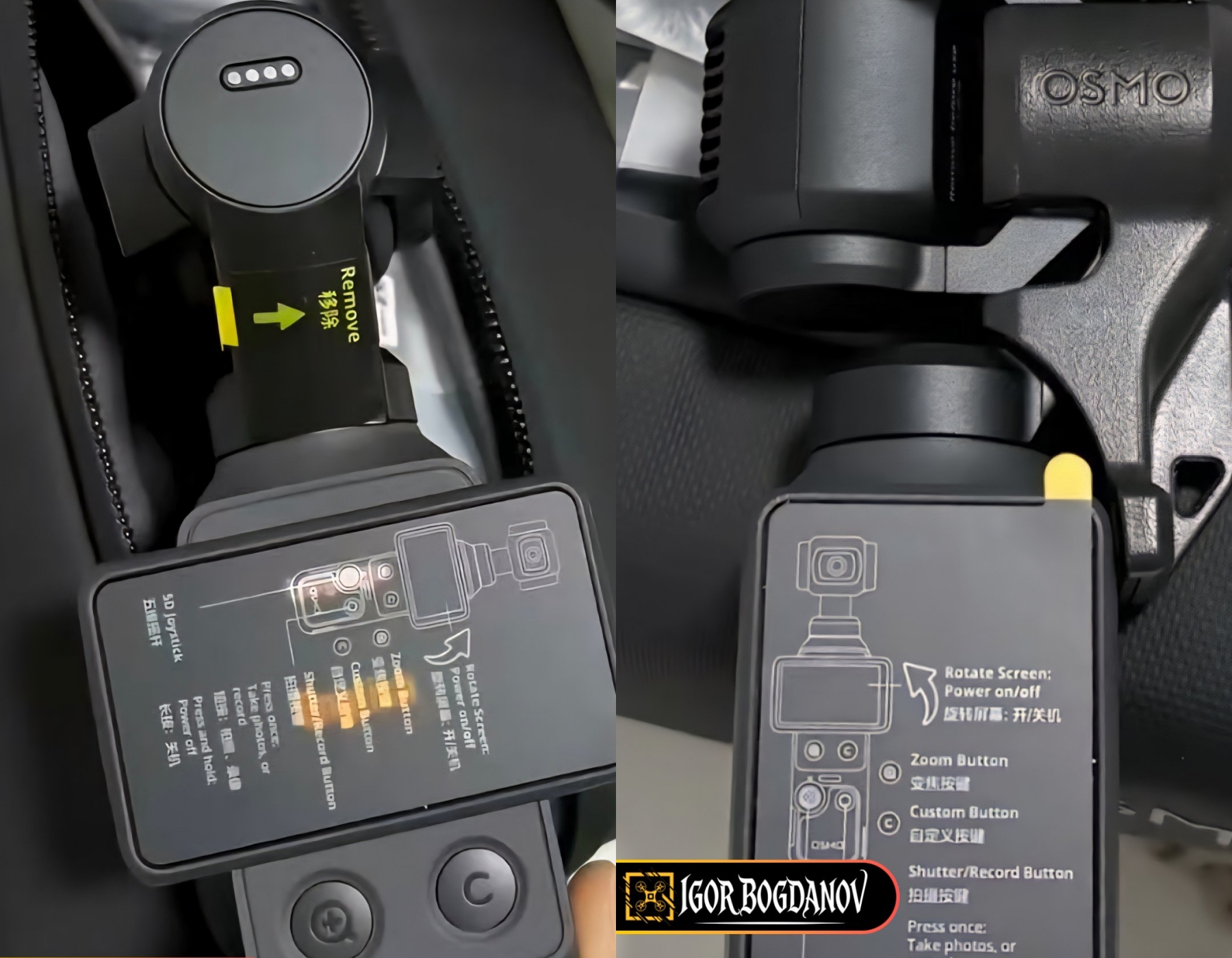 Najnowsze przecieki obrazu DJI Osmo Pocket 4 (przeskalowane za pomocą Gemini) pokazują tekst na ochronnych naklejkach prowadzących gimbala kamery do vlogowania, potwierdzając funkcjonalność nowych przycisków.