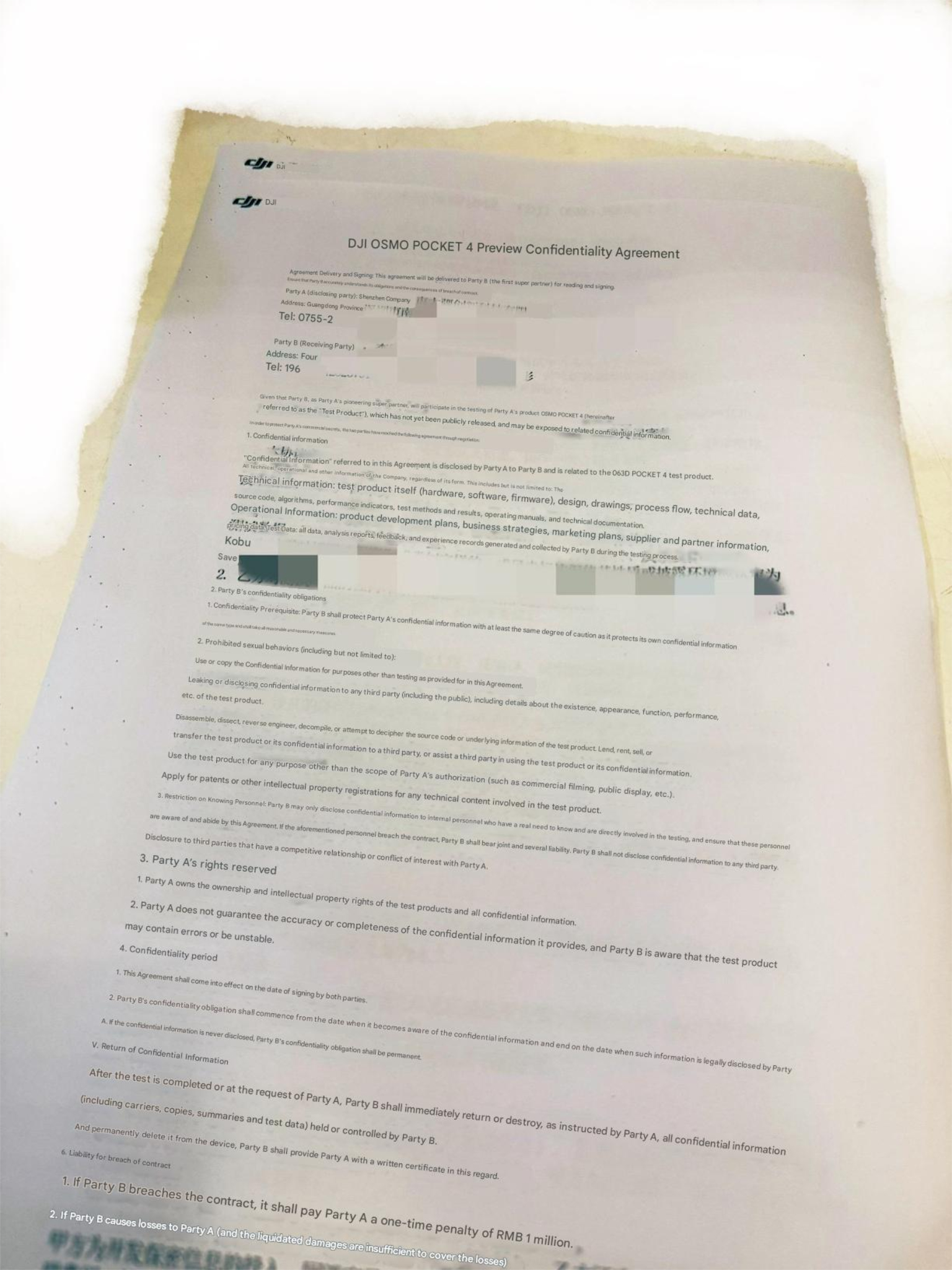 Według doniesień, to trio ma wylądować w listopadzie. W międzyczasie wydaje się, że DJI zastąpi model Osmo Pocket 3(obecnie 645 USD na Amazon). Chociaż nic nie jest jeszcze oficjalne, leaker Igor Bogdanov udostępnił dokument umowy o poufności dotyczącej Osmo Pocket 4 na X. Osadzony poniżej obraz nie pokazuje następnej kamery DJI do vlogowania.