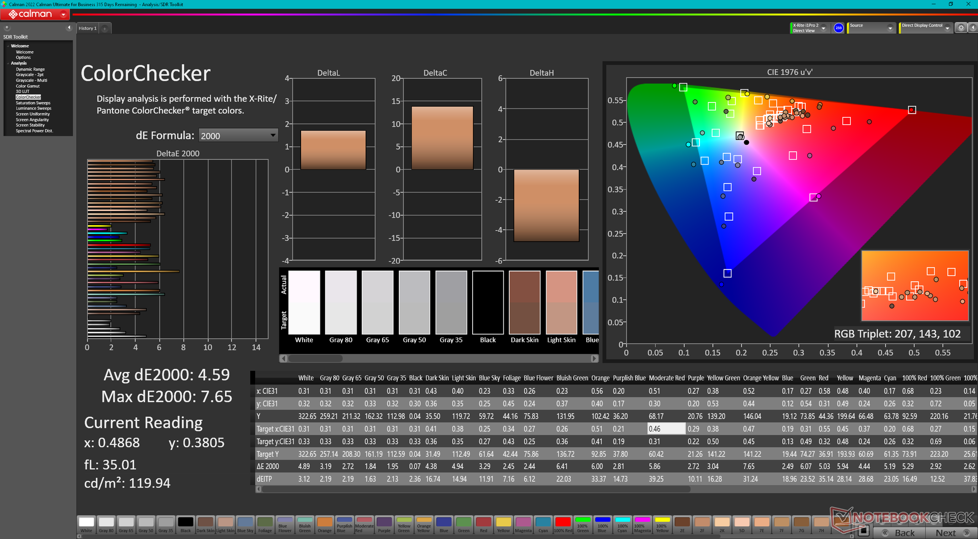 ΔE ColorChecker Calman: 4.59 | ∀{0.5-29.43 Ø4.82}