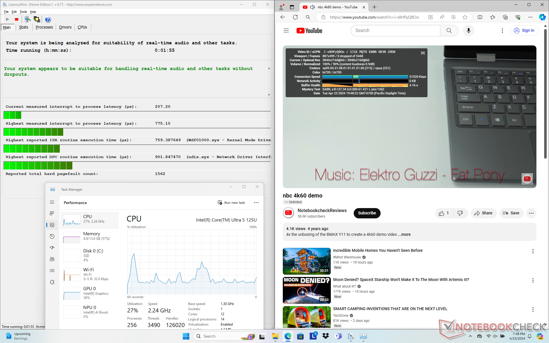 Surowa wydajność Core Ultra 5 125U jest niemal identyczna z zeszłorocznym Core i5-1335U mimo że nowszy procesor stanowi jego bezpośredni zamiennik. W rzeczywistości starszy Core i7-1355U który można znaleźć w Yoga 7 2-in-1 16IRL8, może przewyższać Core Ultra 5 125U o 5 do 10 procent. Użytkownicy, którzy preferują Core Ultra 5 125U, powinni zatem zainteresować się jego zintegrowaną jednostką NPU, aby przyspieszyć niektóre zadania AI, które pojawią się w systemie Windows w najbliższej przyszłości.