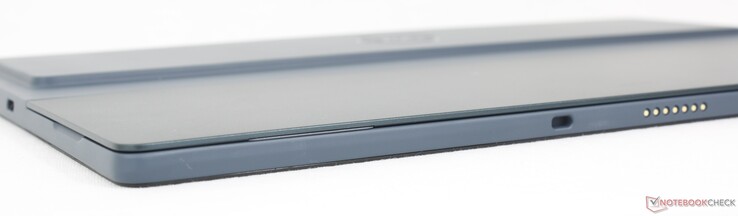 Co ciekawe, system Dell nie jest cięższy niż Surface Pro 9 nawet po uwzględnieniu nieco większego profilu i chłodzenia komory parowej. Dołączenie podstawy klawiatury dodaje kolejne 395 g, aby być prawie tak ciężkim jak 14-calowy Lenovo ThinkPad X1 2-w-1 G9.