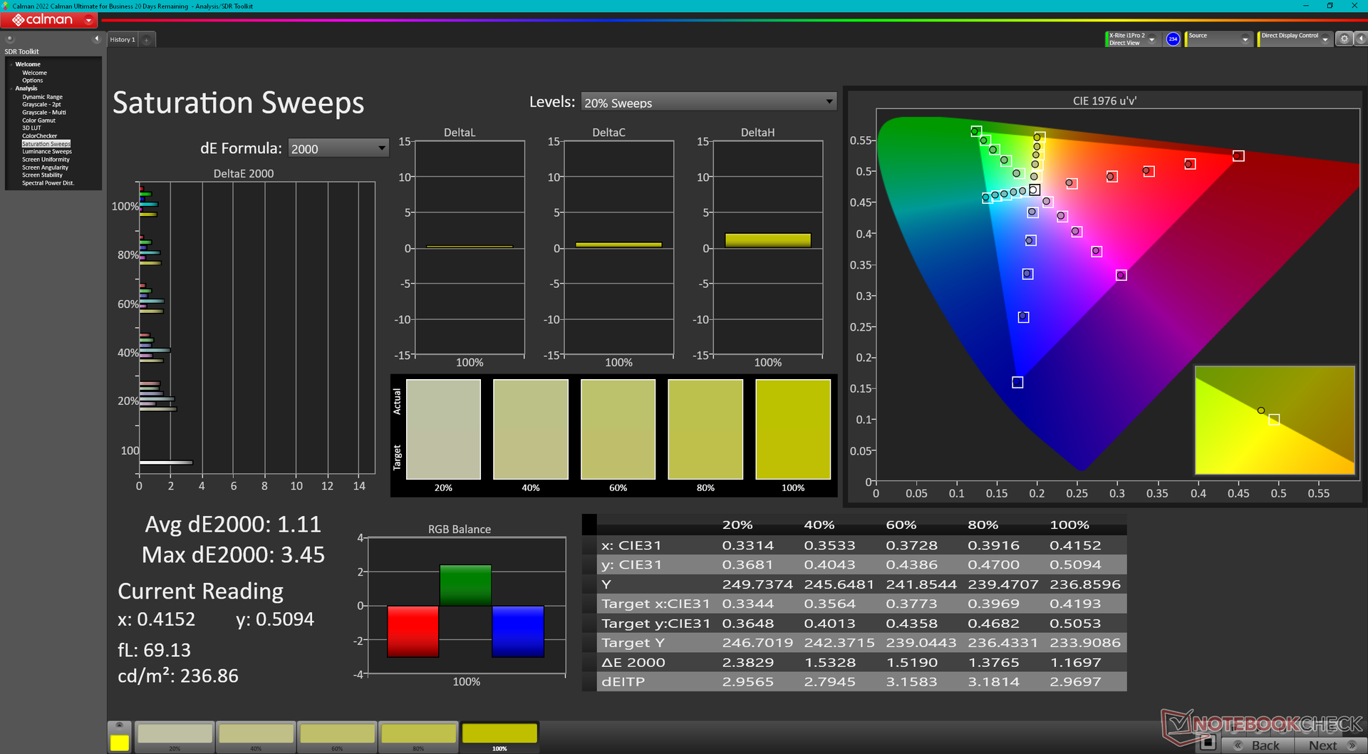 | sRGB Coverage (%) | 98.9 | 97.7 -1% | 100 1% | 100 1% | 99.2 0% | 100 1% |