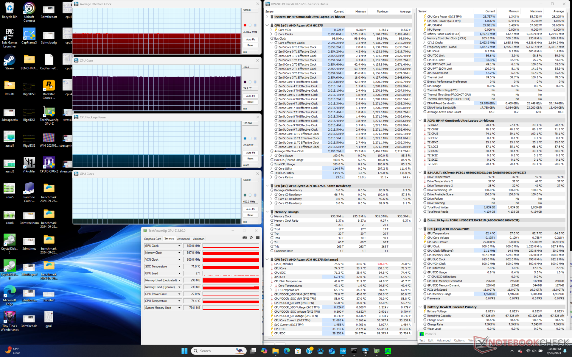 Najważniejszym elementem OmniBooka Ultra 14 jest z pewnością procesor Zen 5. Oferowana przez niego wydajność jest szalona w stosunku do ceny 1000 USD i małej 14-calowej obudowy. HP nie reklamuje OmniBooka Ultra 14 jako jednego z najszybszych 14-calowych subnotebooków na rynku, ale być może powinno, ponieważ trudno byłoby znaleźć coś szybszego bez uciekania się do cięższych modeli z oddzielnymi GPU, takich jak XPS 14. Wyniki są ekscytujące, zwłaszcza że Hawk Point był prawdopodobnie rozczarowujący.