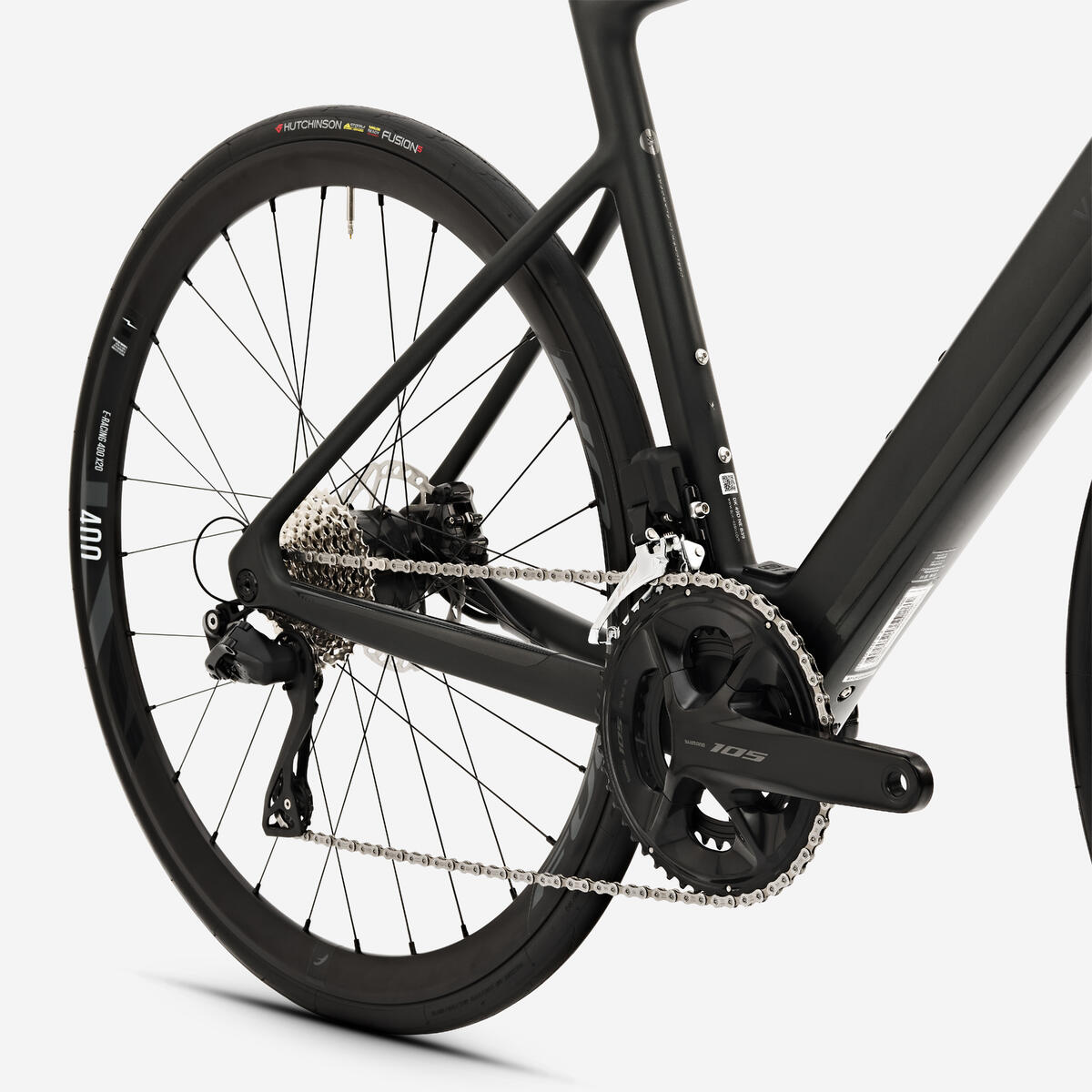 Jak sama nazwa wskazuje, Van Rysel E-EDR CF ma karbonową ramę i widelec. Rower jest napędzany silnikiem Mahle X20 o mocy 55 Nm, który waży zaledwie 1,4 kg. Te dwa komponenty sprawiają, że e-rower jest lekki i waży 12 kg (~26 funtów); dla porównania Van Rysel E-EDR AF z aluminiową ramą waży 14 kg (~31 funtów). Akumulator o pojemności 350 Wh pozwala na jazdę ze wspomaganiem do 150 km (~93 mil), a opcjonalny przedłużacz o pojemności 171 Wh zapewnia zasięg do 200 km (~124 mil). Model posiada również elektroniczny napęd Shimano 105 Di2 2x12S, hydrauliczne hamulce tarczowe Shimano 105, opony Hutchinson Fusion 5 Performance 700x28 oraz łączność Bluetooth i ANT+.