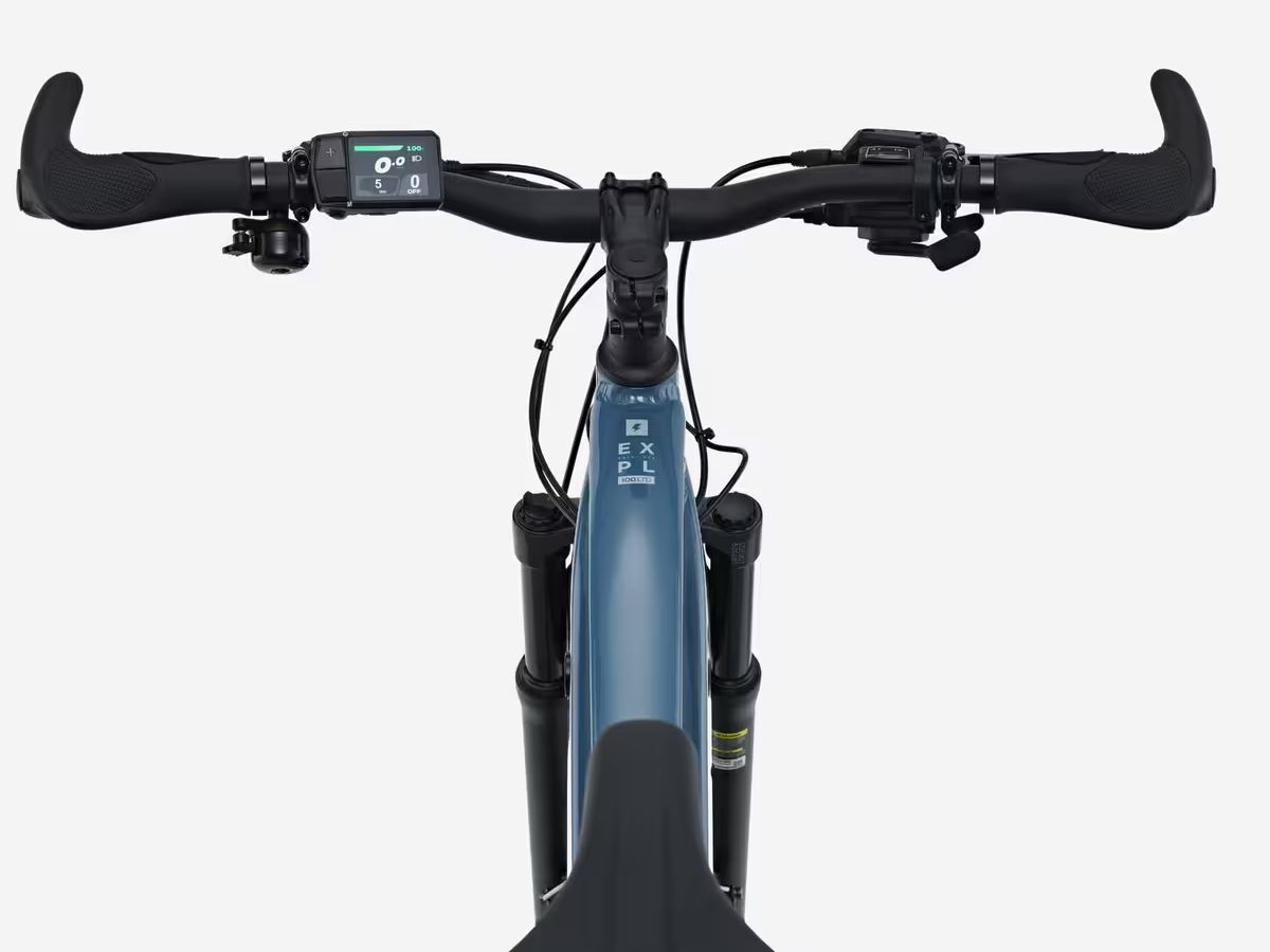 Inne cechy roweru Decathlon Rockrider E-EXPL 100 LTD obejmują tylną przerzutkę Microshift RD-M25L X7, widelec amortyzowany Zoom o skoku 100 mm, dwutłokowe hydrauliczne hamulce tarczowe i 29-calowe opony Kenda Booster K1227. Na lewej kierownicy znajduje się ekran sterowania LED, na którym rowerzysta może przeglądać informacje, takie jak tryb wspomagania, aktualna prędkość i pozostały poziom naładowania baterii. Tutaj można również aktywować tryb wspomagania chodzenia, wyłączyć rower i sterować oświetleniem. Ponadto znajduje się tu port USB-C, który można wykorzystać do ładowania telefonu w podróży.