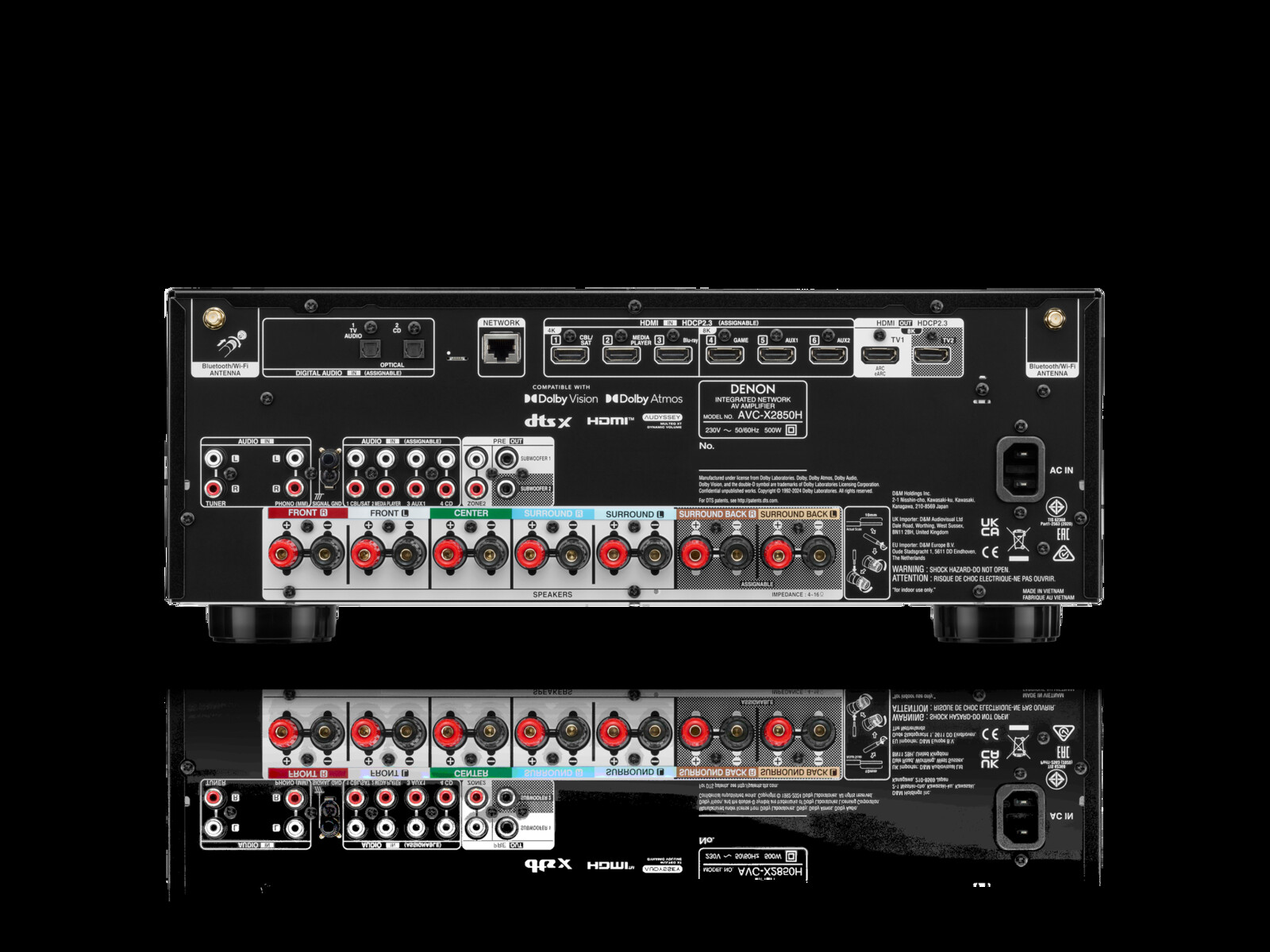 Denon twierdzi, że amplituner AV jest szybko gotowy do użycia dzięki asystentowi konfiguracji. System można dostroić za pomocą Audyssey MultEQ XT. Dostępnych jest sześć portów HDMI, z których trzy obsługują 8K, a także eARC, ALLM i VRR. Dodatkowo dostępne są dwa wyjścia HDMI do podłączenia np. telewizora i projektora.