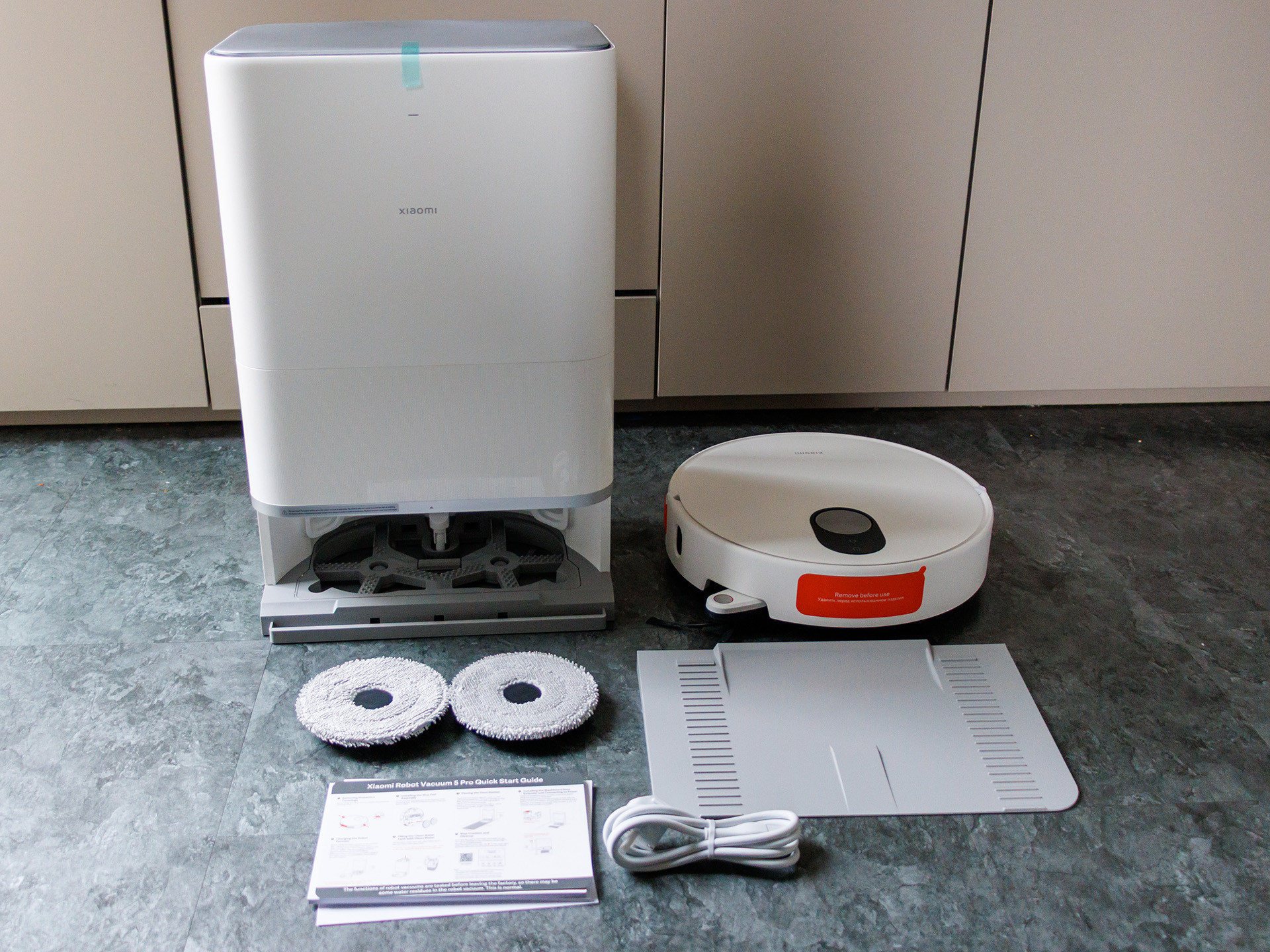 Wyposażenie obejmuje stację bazową typu "wszystko w jednym", która automatycznie opróżnia pojemnik na kurz, czyści mopy wodą, a następnie suszy je ciepłym powietrzem (80°C), ograniczając konserwację i powstawanie nieprzyjemnych zapachów. Pojemna bateria pozwala na około dwugodzinną pracę, a w razie potrzeby robot samodzielnie powraca do stacji i kontynuuje pracę od miejsca, w którym ją przerwał. Xiaomi Robot Vacuum 5 Pro jest sterowany za pomocą aplikacji Xiaomi Home z zarządzaniem mapami, układem pomieszczeń, obszarami o ograniczonym dostępie i indywidualnymi harmonogramami czyszczenia; ponadto dostępni są popularni asystenci głosowi, aby wygodnie rozpocząć czyszczenie za pomocą poleceń głosowych lub zintegrować je ze scenariuszami inteligentnego domu.
