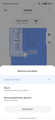 W aplikacji można zdefiniować wirtualne ściany lub obszary o ograniczonym dostępie. Aby uzyskać lepszy przegląd, można również umieścić meble lub zapisać wykładziny podłogowe. Robot samodzielnie dzieli zmapowany obszar na pomieszczenia, które można łączyć lub rozdzielać w zależności od potrzeb. Możliwe jest również nadawanie nazw mapom i poszczególnym pomieszczeniom.