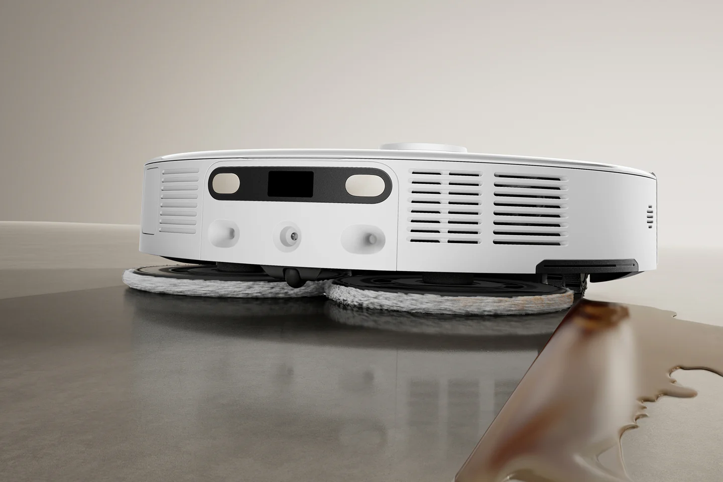 Dotyczy to również jednego z dwóch obrotowych mopów z tyłu, który wysuwa się na boki z obudowy, aby czyścić wzdłuż listew przypodłogowych i mebli. Mopy obracają się z prędkością do 260 obrotów na minutę i są zaprojektowane do usuwania plam przy nacisku 12 N w dół. Jak dobrze sprawdza się to w praktyce, okaże się podczas testów. Ogólnie rzecz biorąc, ta technologia mopowania jest gorsza od mopa rolkowego, takiego jak ten używany w Mova S70 Roller Mova S70 Roller.