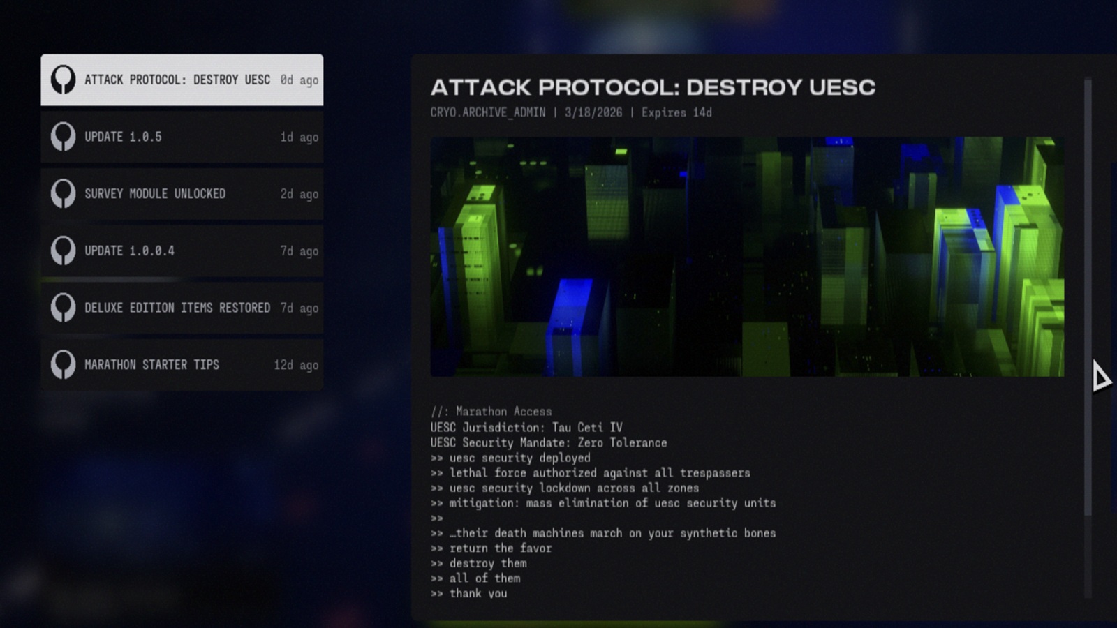 Duża aktualizacja Marathonu 1.0.5 dodaje Archiwum Cryo, zestrzelony exfil i poprawki interfejsu użytkownika