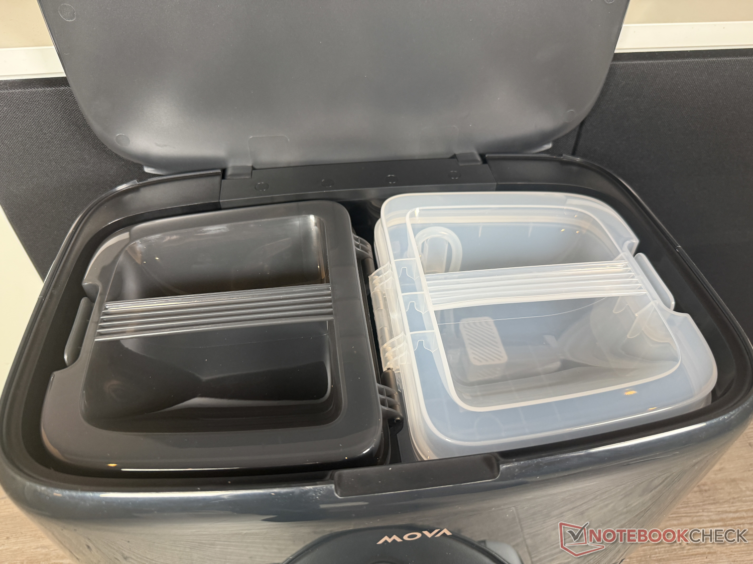 Oczywiście w zestawie znajduje się również stacja bazowa o znanym designie Mova. Nie tylko czyści pojemnik na kurz do worka o pojemności 3,2 l. Zajmuje się również czyszczeniem funkcji mopowania. Mova wykorzystuje wodę o nieco niższej temperaturze 80°C niż Dreame. Nie miało to jednak większego wpływu na wizualną czystość rolki mopującej w teście. Następnie do suszenia używane jest ciepłe powietrze. Ponadto sterylizację UV można aktywować za pomocą aplikacji, a dwa środki czyszczące mogą być dozowane automatycznie.