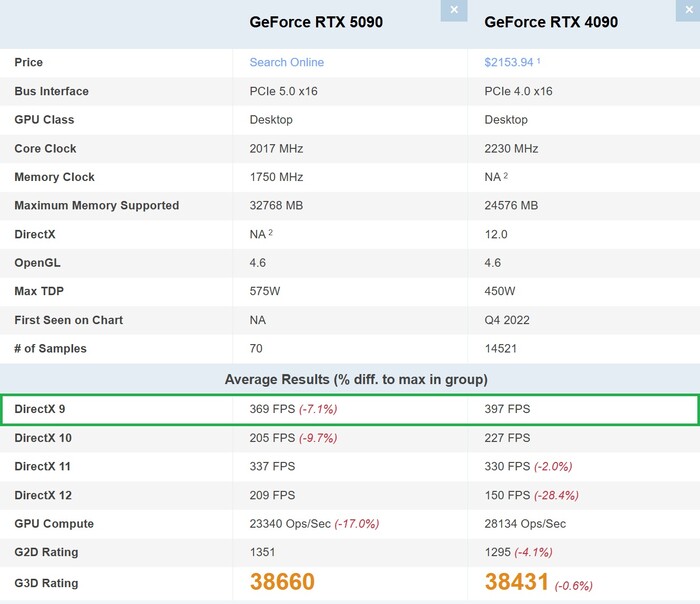 Chociaż ta wiadomość stanowi powód, dla którego RTX 5090 i RTX 5080 wyglądały mniej niż imponująco w porównaniu z RTX 4090 i RTX 4080 i że przyszła łatka od PassMark powinna pozwolić kartom Blackwell na poprawę ich wyników, niestety na tym kończy się srebrna podszewka chmury. Jak wskazano w poście X osadzonym poniżej tego artykułu, usunięcie obsługi warstwy oprogramowania nie wyjaśnia, dlaczego RTX 5090 wypada gorzej niż RTX 4090 w teście Teście DirectX 9choć wielkość próby wynosząca odpowiednio 70 vs. 14 521 jest co najmniej rozbieżna.