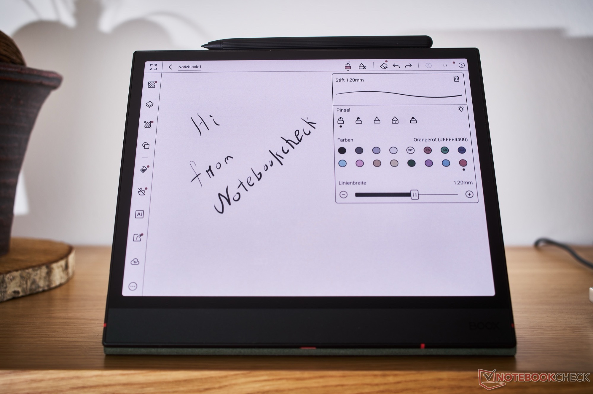 Centralnym elementem tabletu jest 10,3-calowy wyświetlacz E-Ink oparty na panelu Kaleido 3, zdolny do wyświetlania 4096 kolorów. W trybie kolorowym ekran wyświetla 1240 × 930 pikseli przy 150 PPI; podczas wyświetlania tylko czarno-białych treści rozdzielczość skacze do 2480 × 1860 pikseli. Panel jest wystarczająco szybki, aby płynnie przewijać aplikacje i strony internetowe, ale nadal słabo nadaje się do odtwarzania wideo, ponieważ powidoki pozostają zbyt długo.