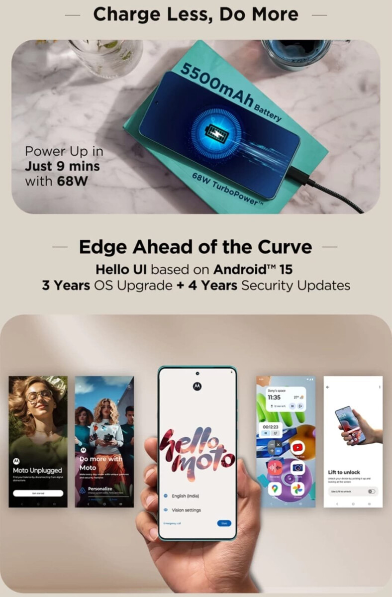 Edge 60 Fusion będzie również dostarczany z obietnicą trzyletnich aktualizacji systemu operacyjnego i czwartego roku aktualizacji poprawek bezpieczeństwa, podobnie jak Edge 50 Fusion (obecnie 262 USD na Amazon). Jednak Edge 60 Fusion zaczyna się od preinstalowanego Android 15, w porównaniu do Android 14 dla swojego poprzednika. Proszę zobaczyć poniższe zrzuty ekranu, aby uzyskać więcej informacji.