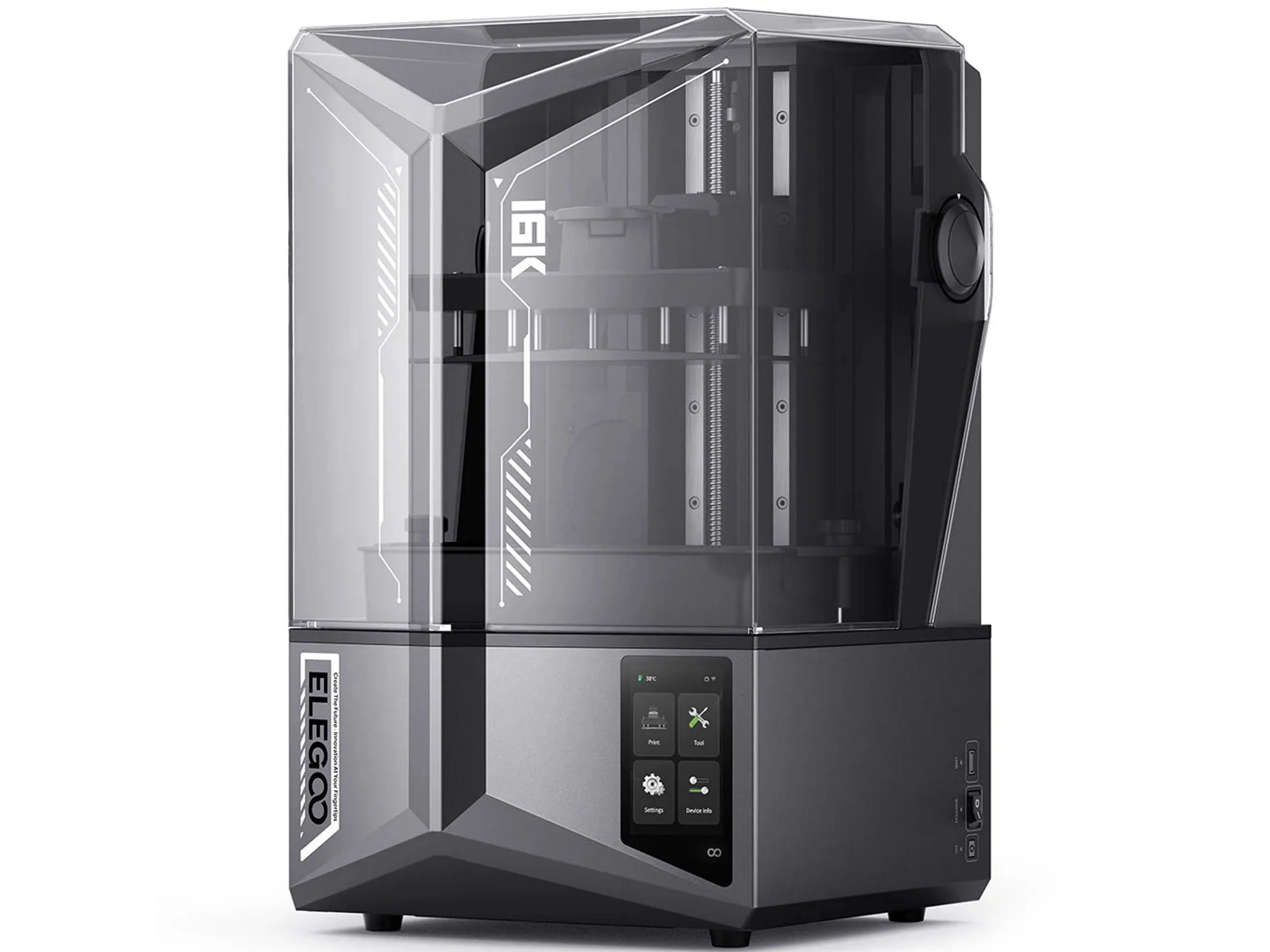 Wariant 16K drukarki ma również tę samą objętość roboczą 211,68 x 118,37 x 220 milimetrów, ale posiada nową kamerę AI z wbudowanym oświetleniem komory, umożliwiając użytkownikom ciągłe monitorowanie procesu drukowania. System podgrzewania zbiornika jest teraz wyposażony w inteligentną kontrolę temperatury, utrzymując żywicę w stałej temperaturze 30 °C, zapewniając w ten sposób lepszą płynność i przyczepność warstw. Poziomowanie odbywa się automatycznie, co oznacza, że użytkownicy nie muszą ręcznie regulować płyty drukarskiej. Nie jest to wymagające zadanie samo w sobie, ale jest bardzo czasochłonne.