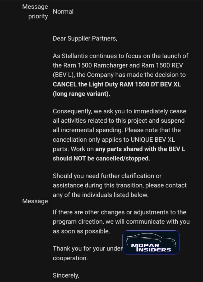 Stellantis wysłał jednak list do dostawców, informując ich, że anuluje największy i najgorszy model REV, a oni powinni kontynuować pracę tylko nad częściami współdzielonymi z jego 350-milowym rodzeństwem, które będzie wyposażone w akumulator o pojemności 168 kWh.