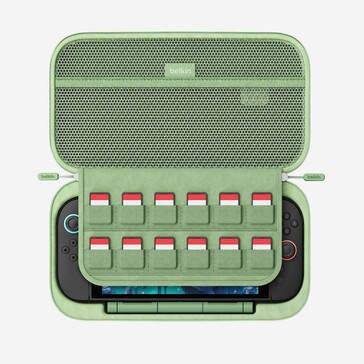 Co więcej, Belkin Charging Case Pro oferuje miejsce na łącznie dwanaście wkładów z grami oraz przegródkę po wewnętrznej stronie pokrywy, która może być używana między innymi do kabli lub ściereczki z mikrofibry. Twarda powłoka zapewnia optymalną ochronę Nintendo Switch 2, a uchwyt do przenoszenia ułatwia transport. Belkin Charging Case Pro jest ładowany przez port USB-C z przodu.