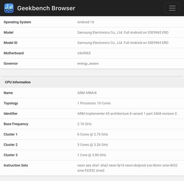 Na tej liście znajduje się Exynos 2600 z tym, co wydaje się być jego ostateczną konfiguracją rdzeni: sześć wydajnych rdzeni pracujących z częstotliwością 2,76 GHz, trzy rdzenie z częstotliwością 3,26 GHz i główny rdzeń z częstotliwością 3,80 GHz. Podczas gdy chipsety Exynos w ciągu ostatnich kilku generacji zazwyczaj pozostawały w tyle za swoimi rywalami Qualcomm, Exynos 2600 wygląda na nastawiony na inną sprawę.