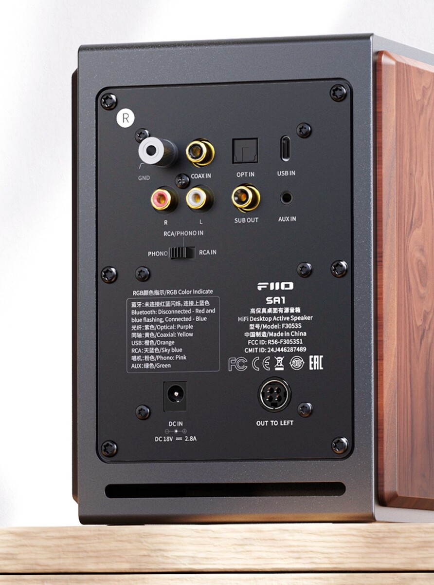 Głośniki stacjonarne FiiO SA1 zostały zaprojektowane z myślą o wyjątkowej wszechstronności. Oprócz wejść aux, TOSLINK i coax, FiiO dołączyło port USB-C do podłączenia do komputera, przedwzmacniacz gramofonowy do użytku z gramofonem oraz Bluetooth 5.4 z obsługą AAC, SBC i LDAC Sony. Wbudowany przetwornik cyfrowo-analogowy obsługuje sygnały audio 96 kHz/32-bit i 192 kHz/24-bit odpowiednio przez wejścia USB i koncentryczne