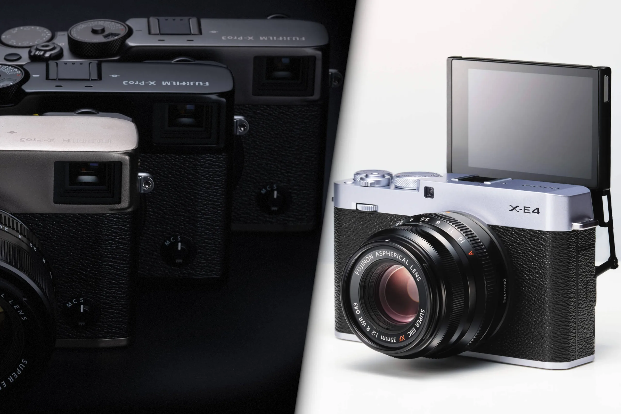 Linia aparatów Fujifilm X-E i X-Pro czerpie wiele z tego, co czyni aparaty X100 tak wyjątkowymi i umieszcza je w korpusach z wymiennymi obiektywami, dając użytkownikom nostalgiczny klimat retro z elastycznością różnorodnych obiektywów Fujifilm z mocowaniem X-Mount. Rozbieżności między tymi dwoma aparatami sprowadzają się do rynku docelowego. Podczas gdy aparaty X-Pro są zazwyczaj skierowane do użytkowników z wyższej półki z wyższym budżetem - zwykle zawierają więcej pokręteł i dotykowych powierzchni sterujących - aparaty X-E są zwykle tańsze i mają bardziej uproszczony charakter.
